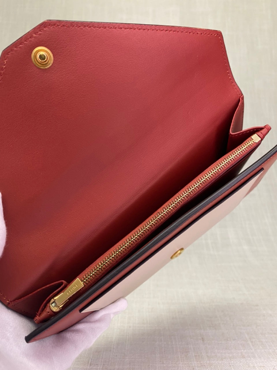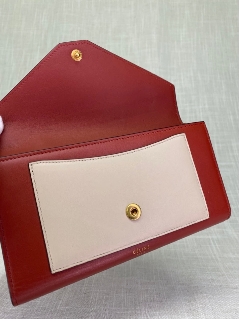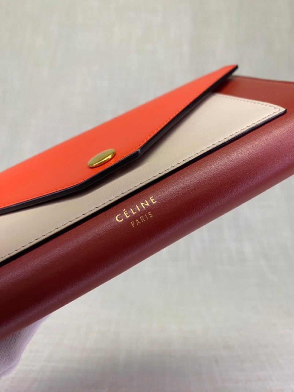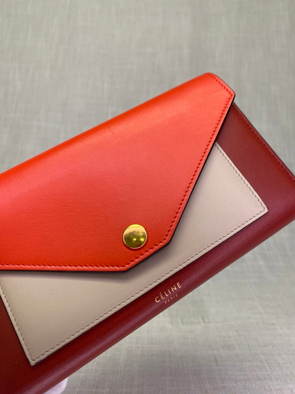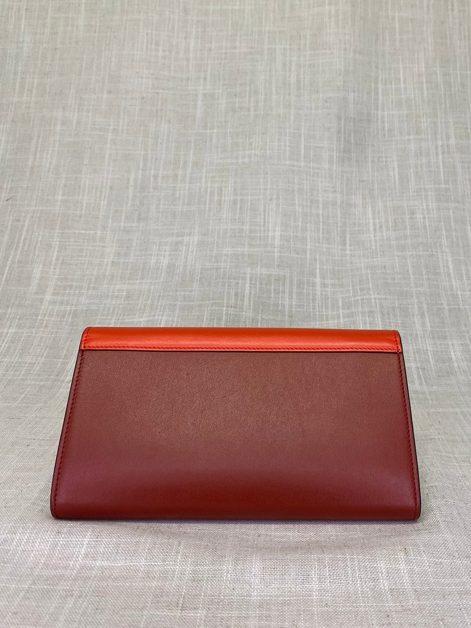 Leather Multi-Color Wallet, Vermillion, Cream, Dark Red w/ Goldtone Hardware