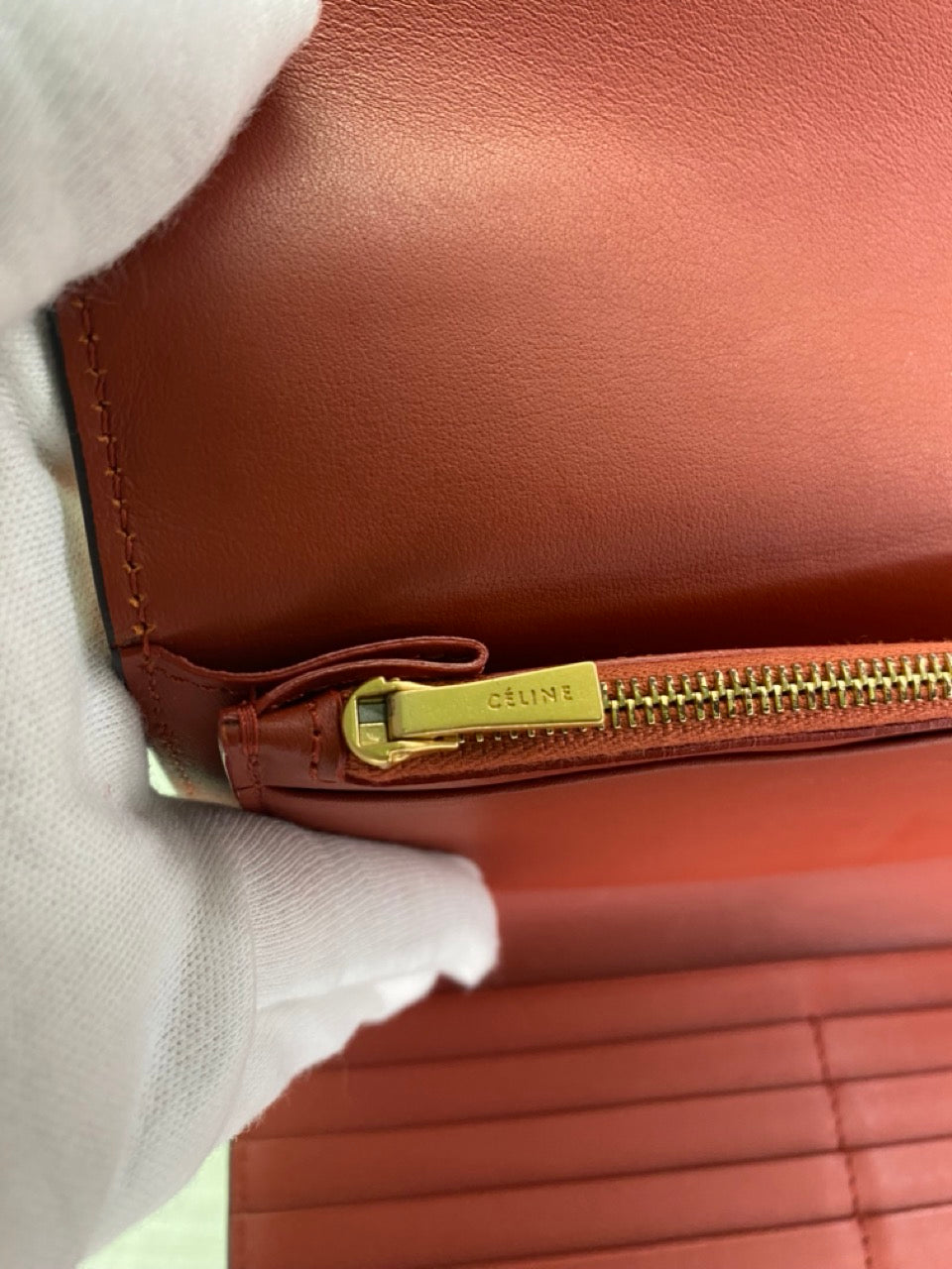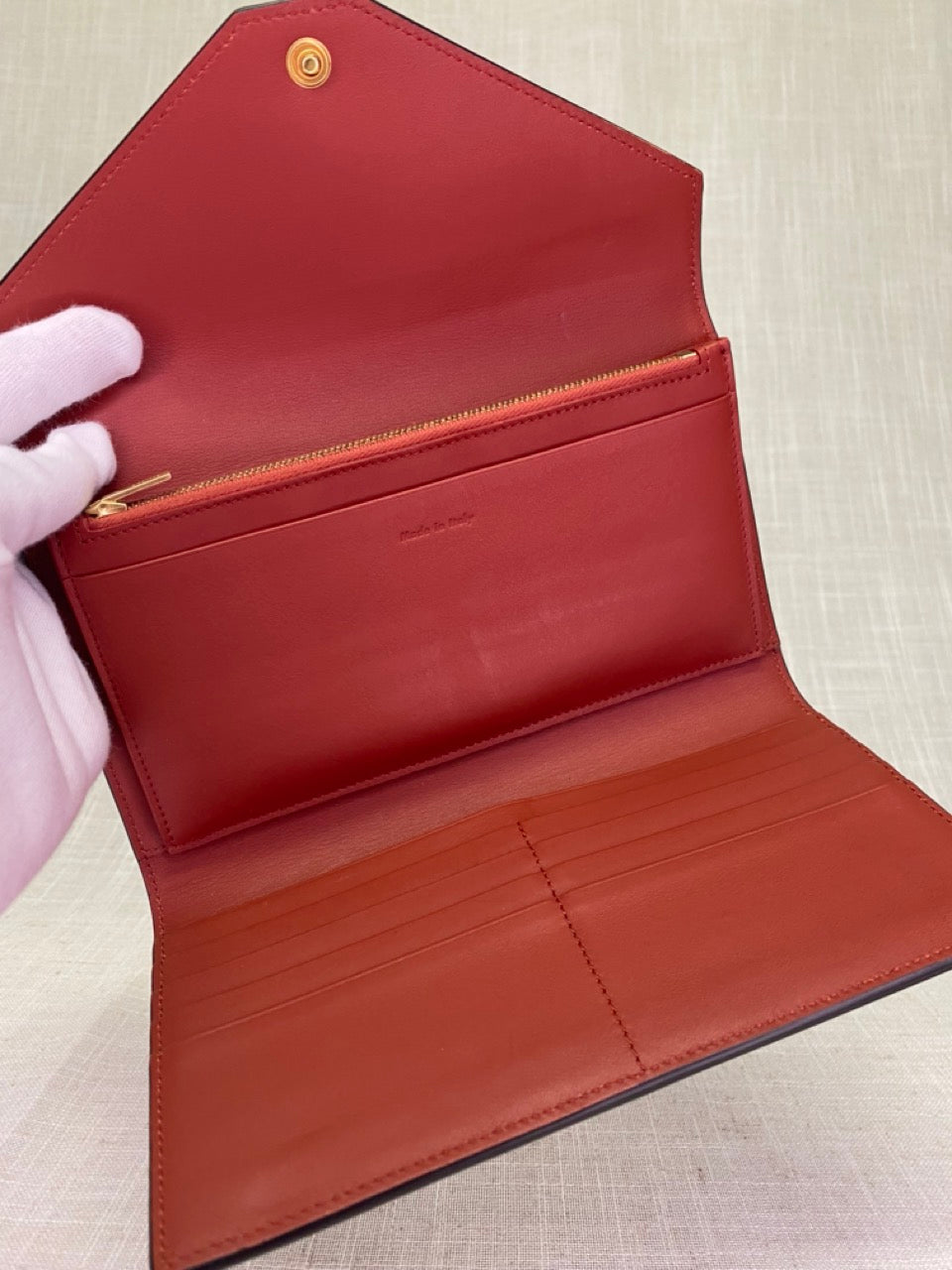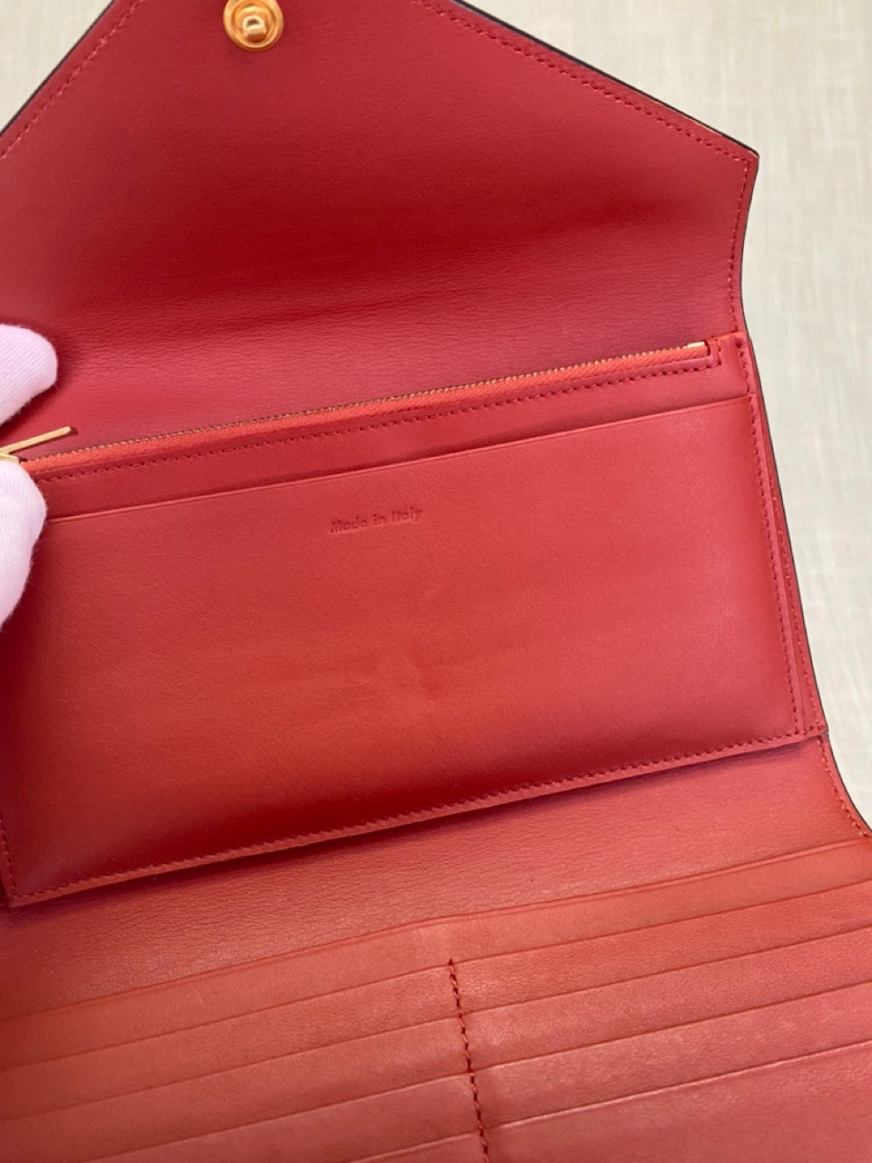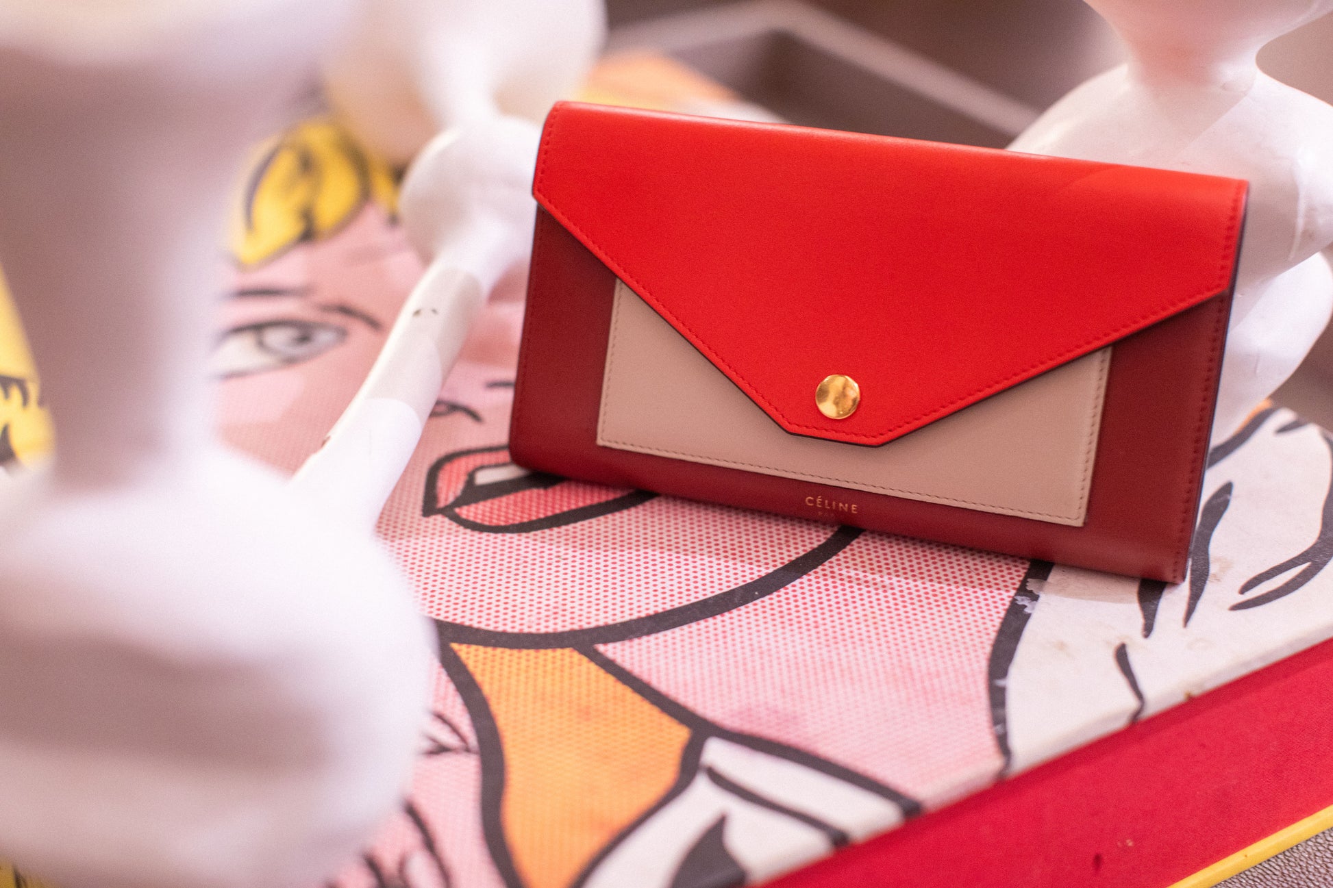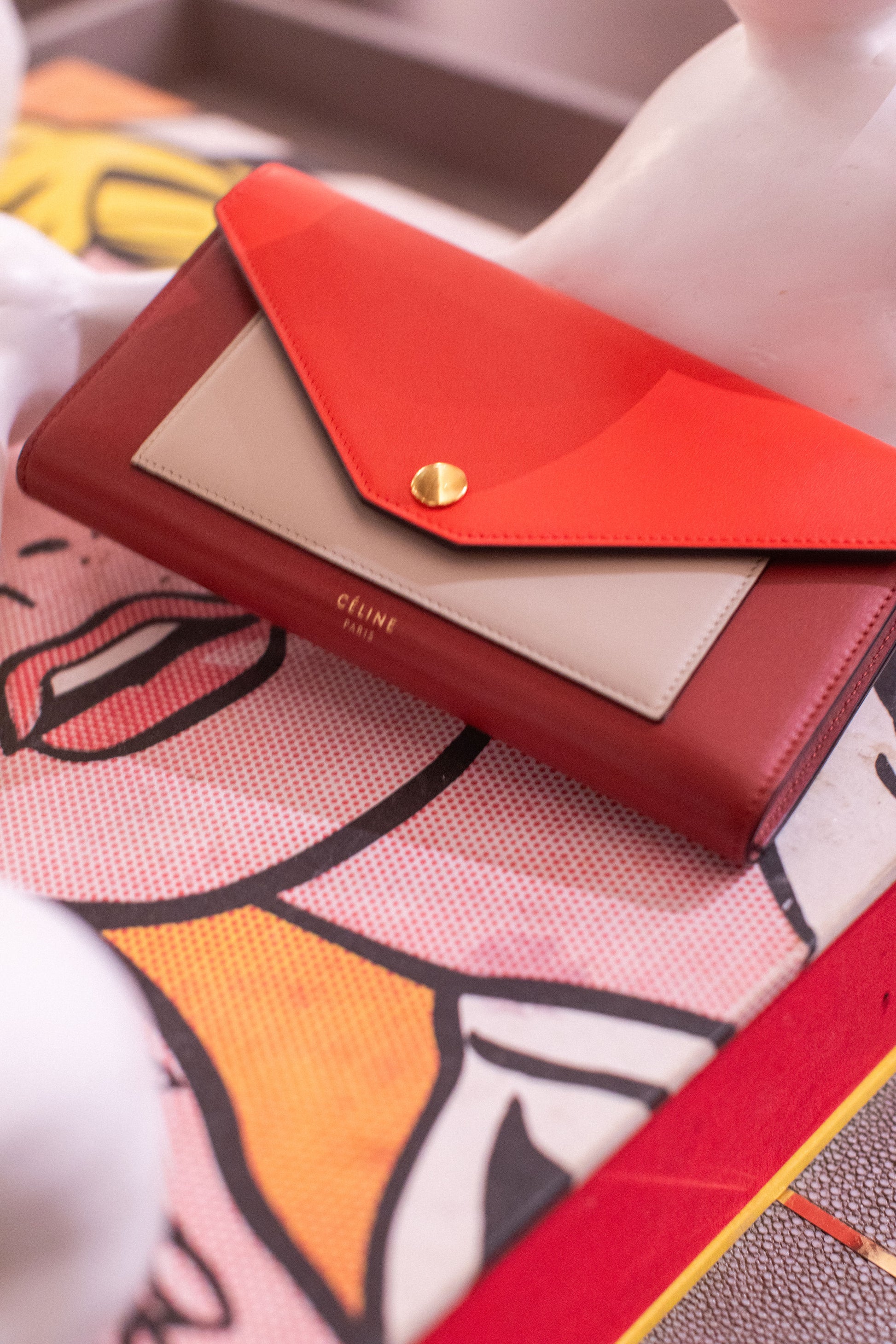 Leather Multi-Color Wallet, Vermillion, Cream, Dark Red w/ Goldtone Hardware