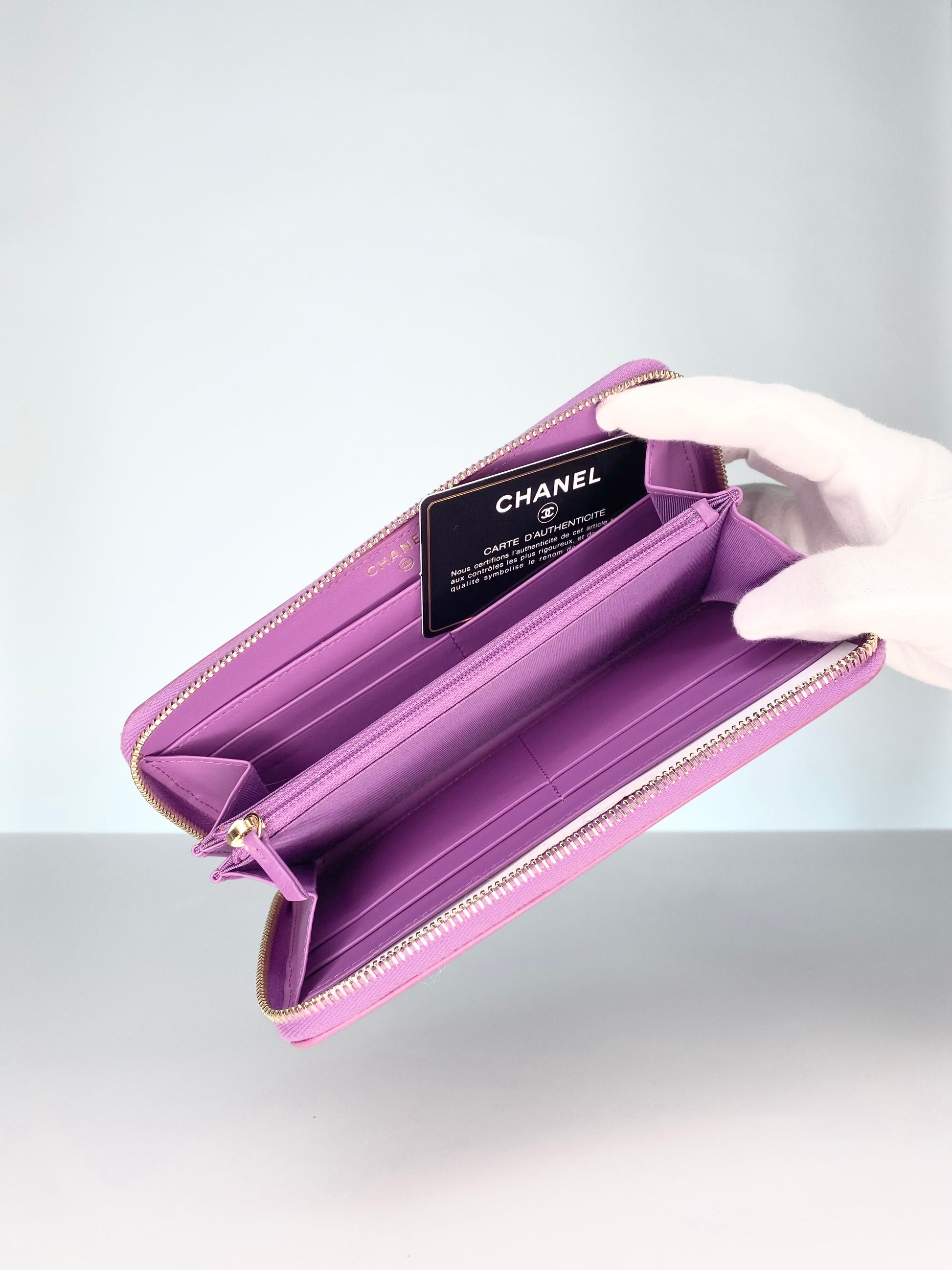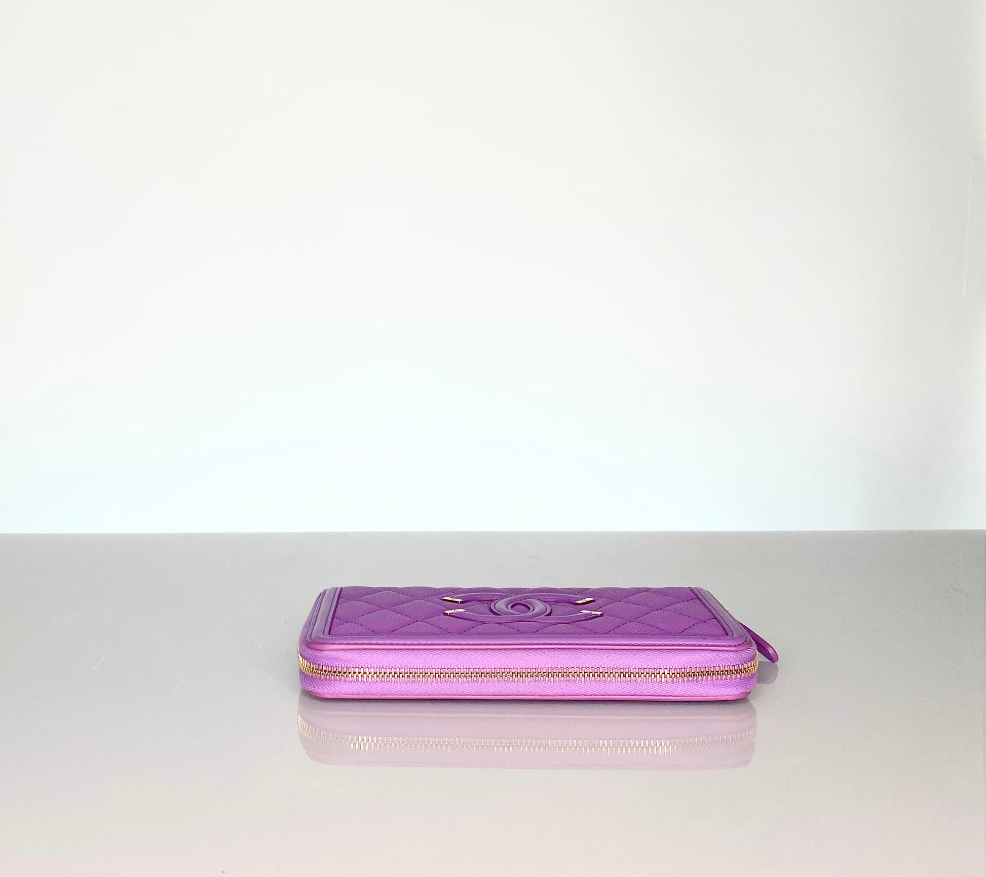 Bright Pinkish Purple Caviar Leather w/ Gold-tone Hardware