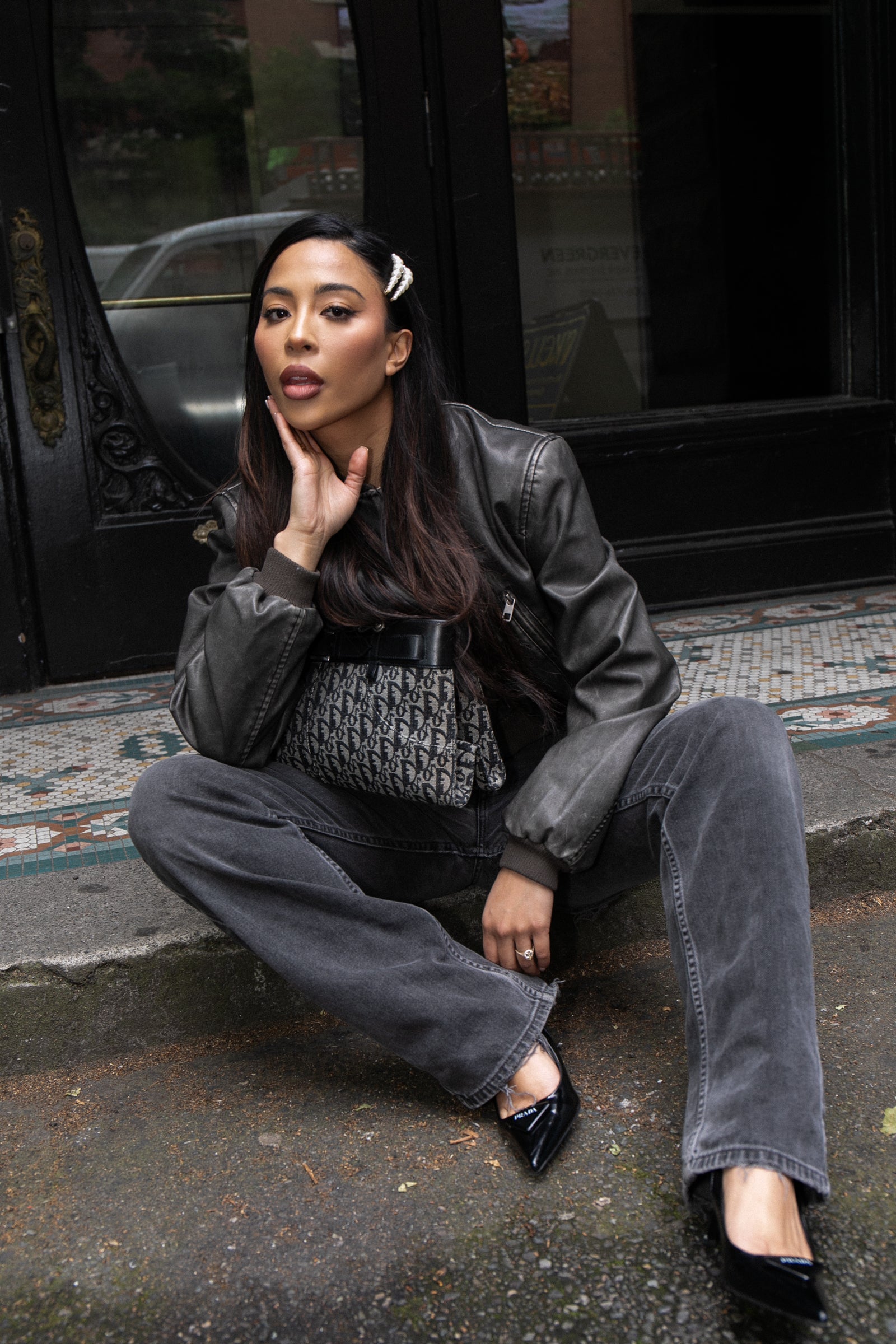 Black Oblique Canvas w/ Belt & Pocket Detail