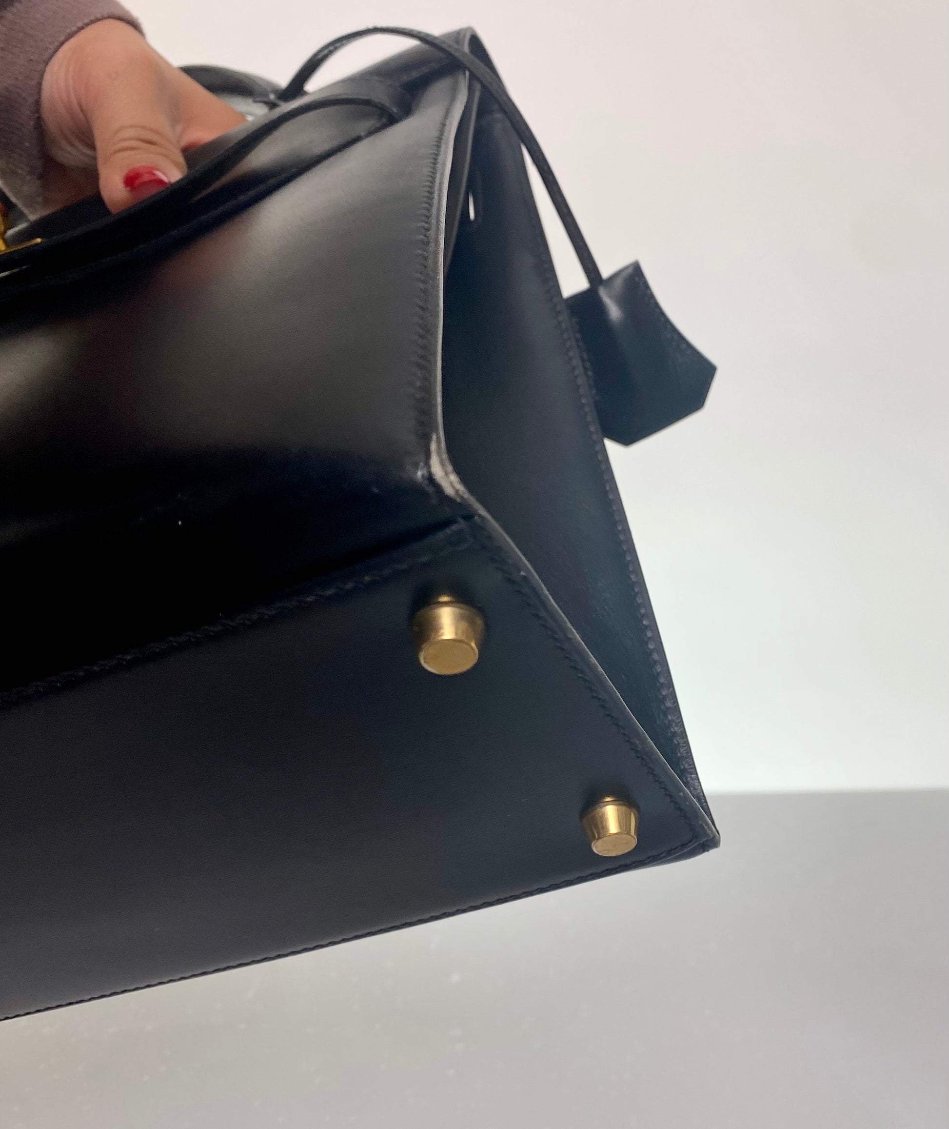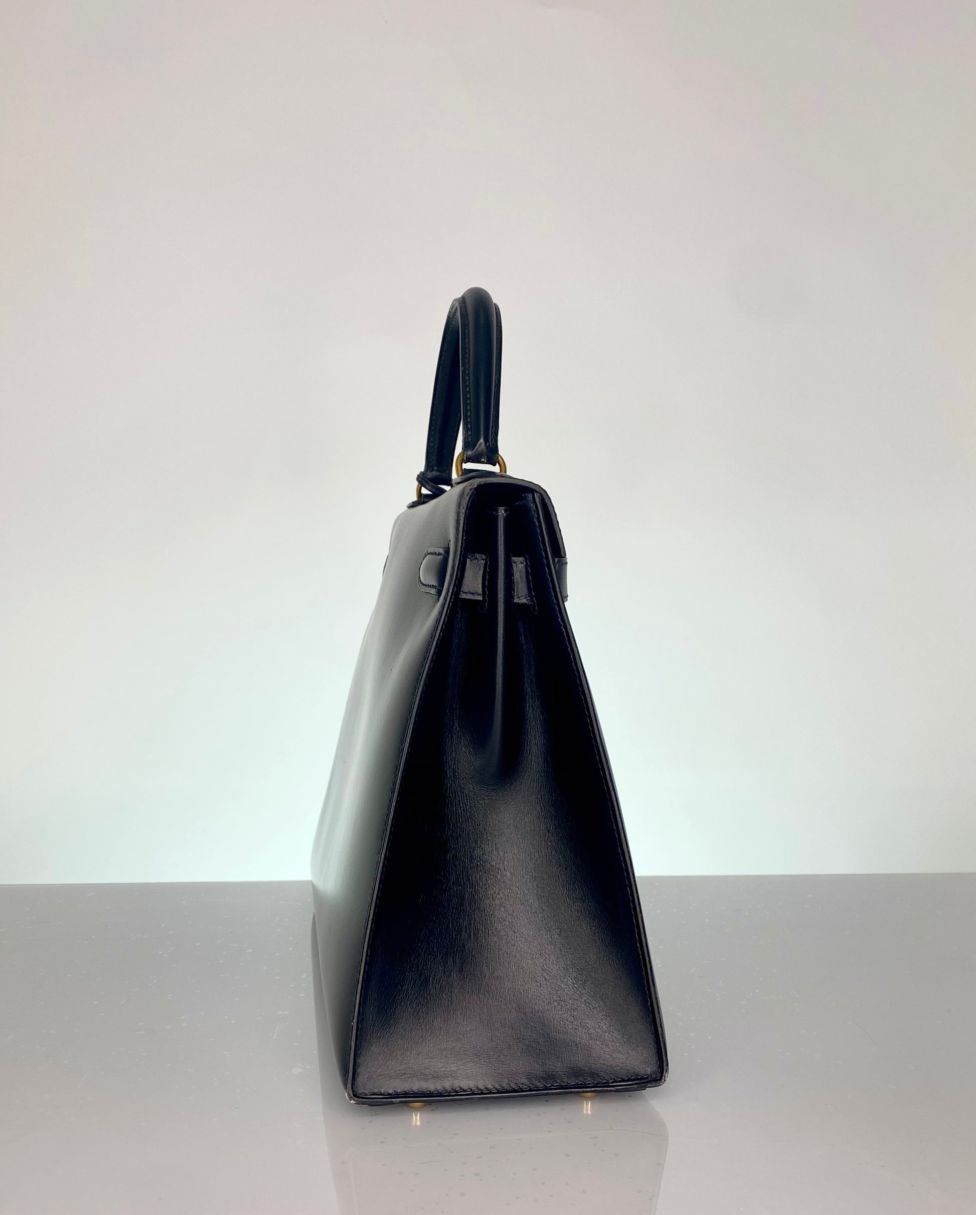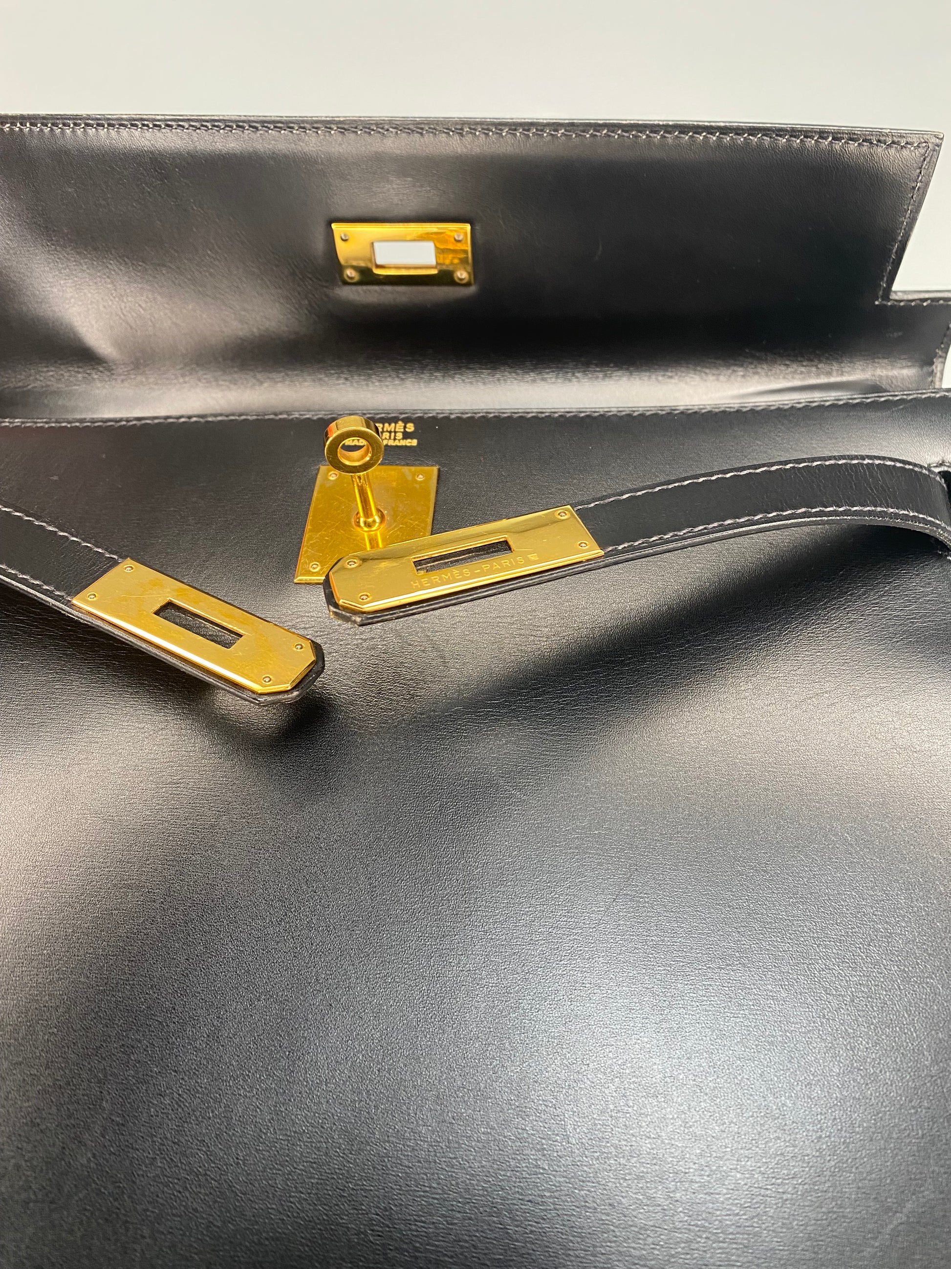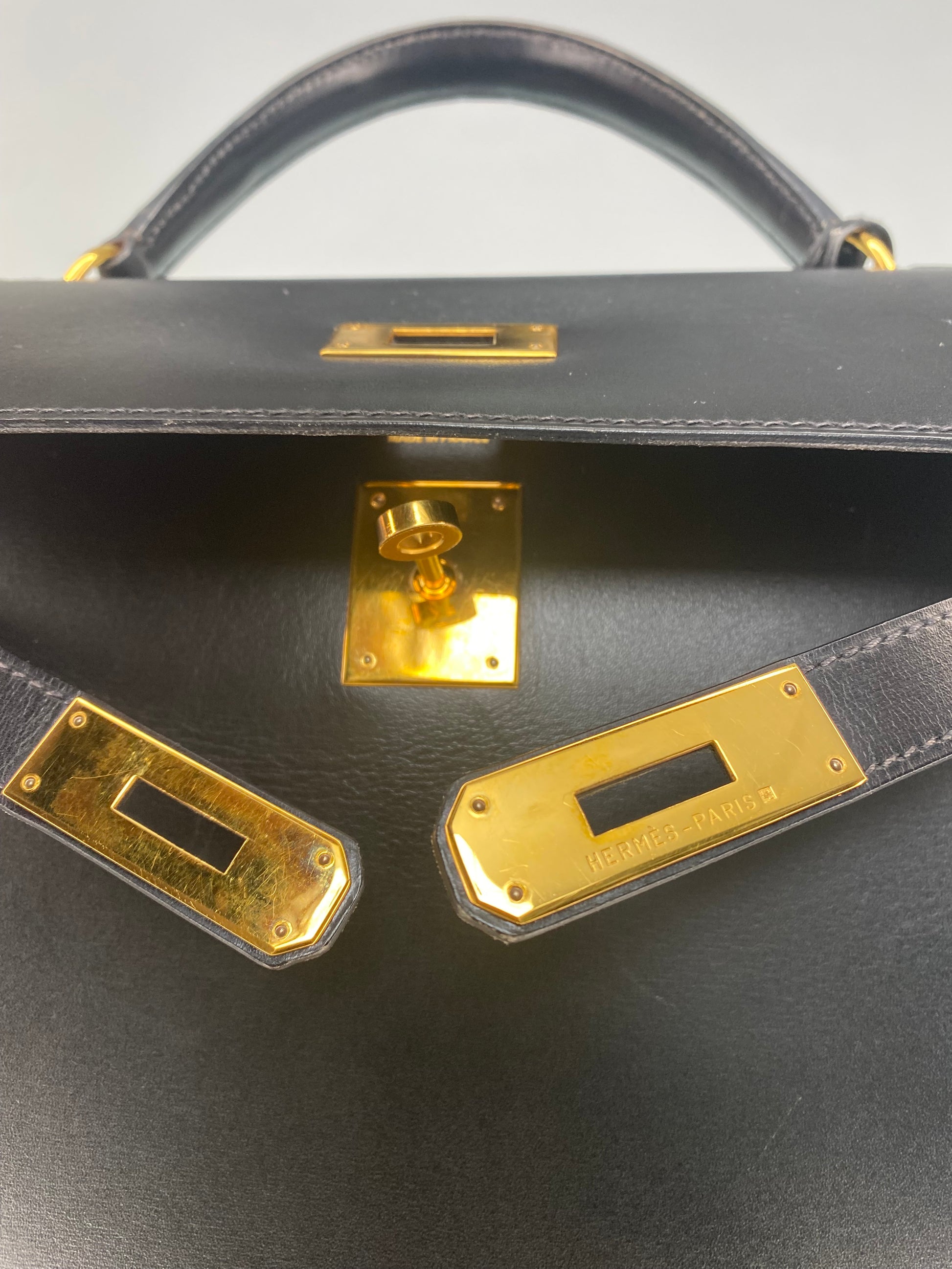 Hermes Vintage Kelly 32 Black Boxcalf Leather