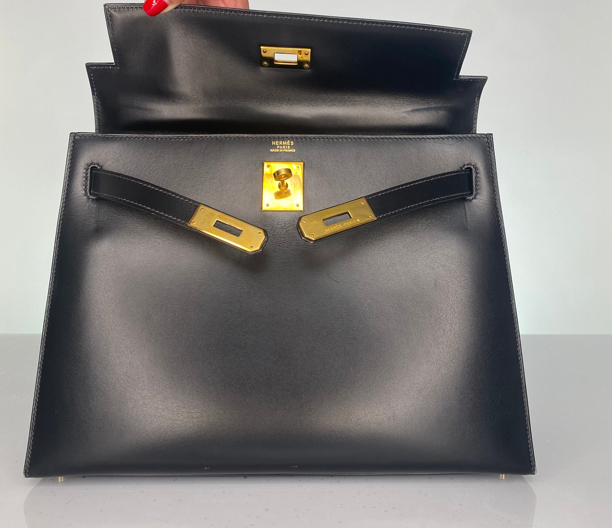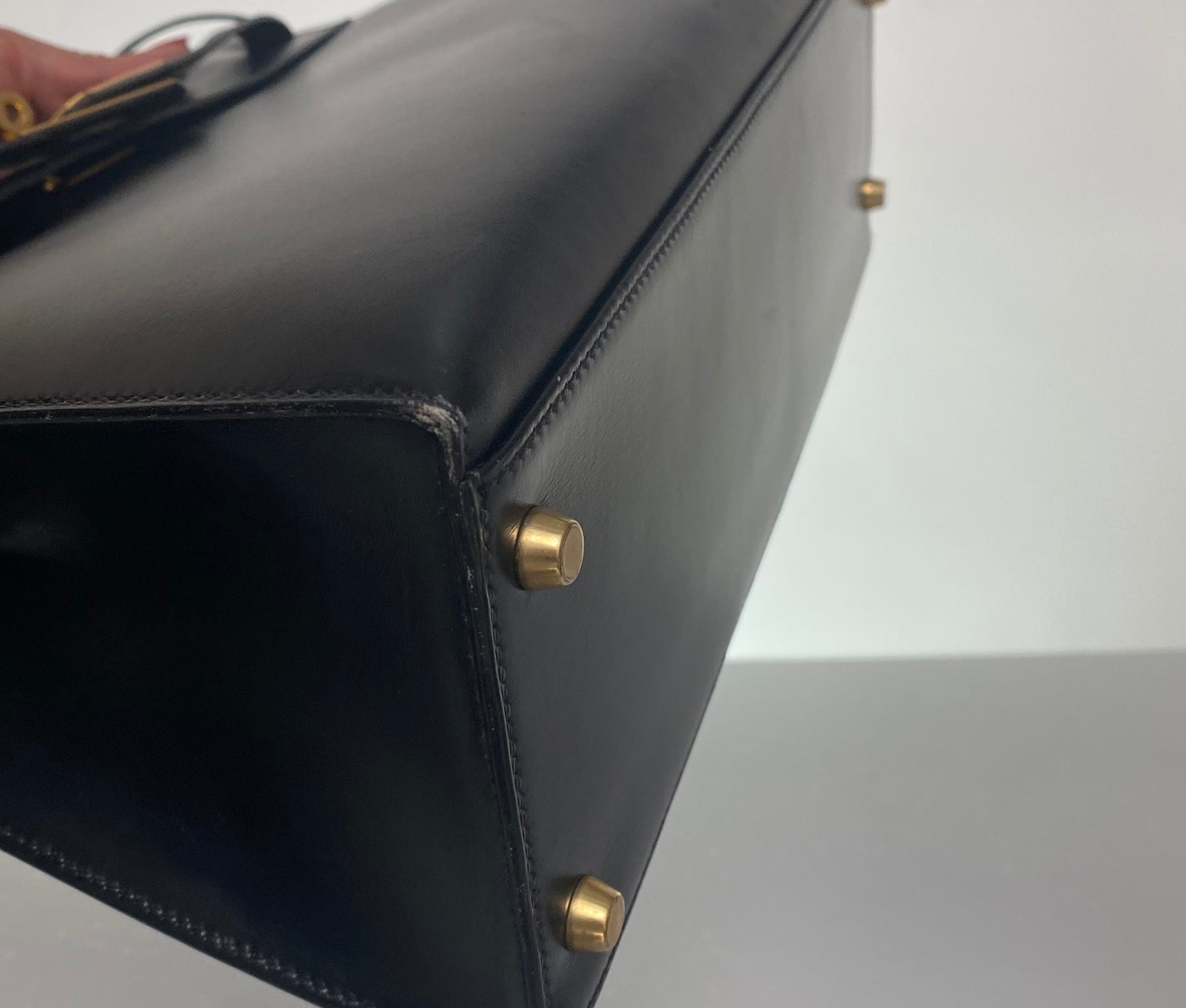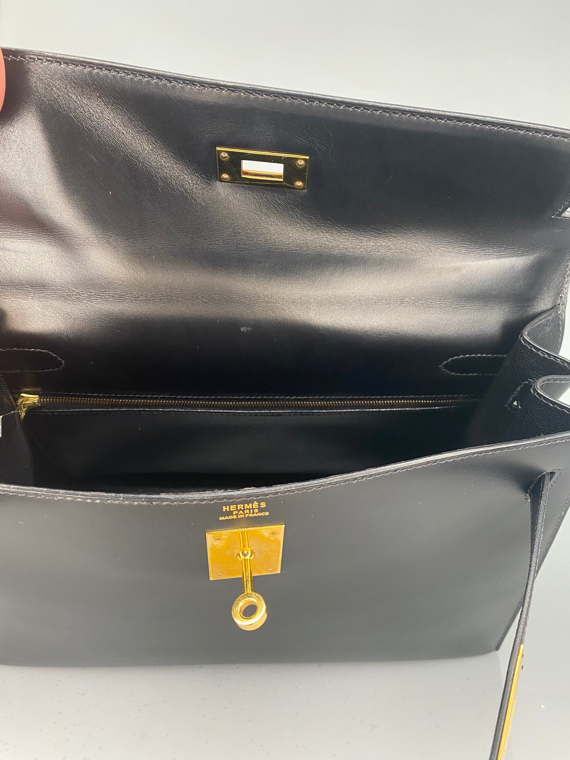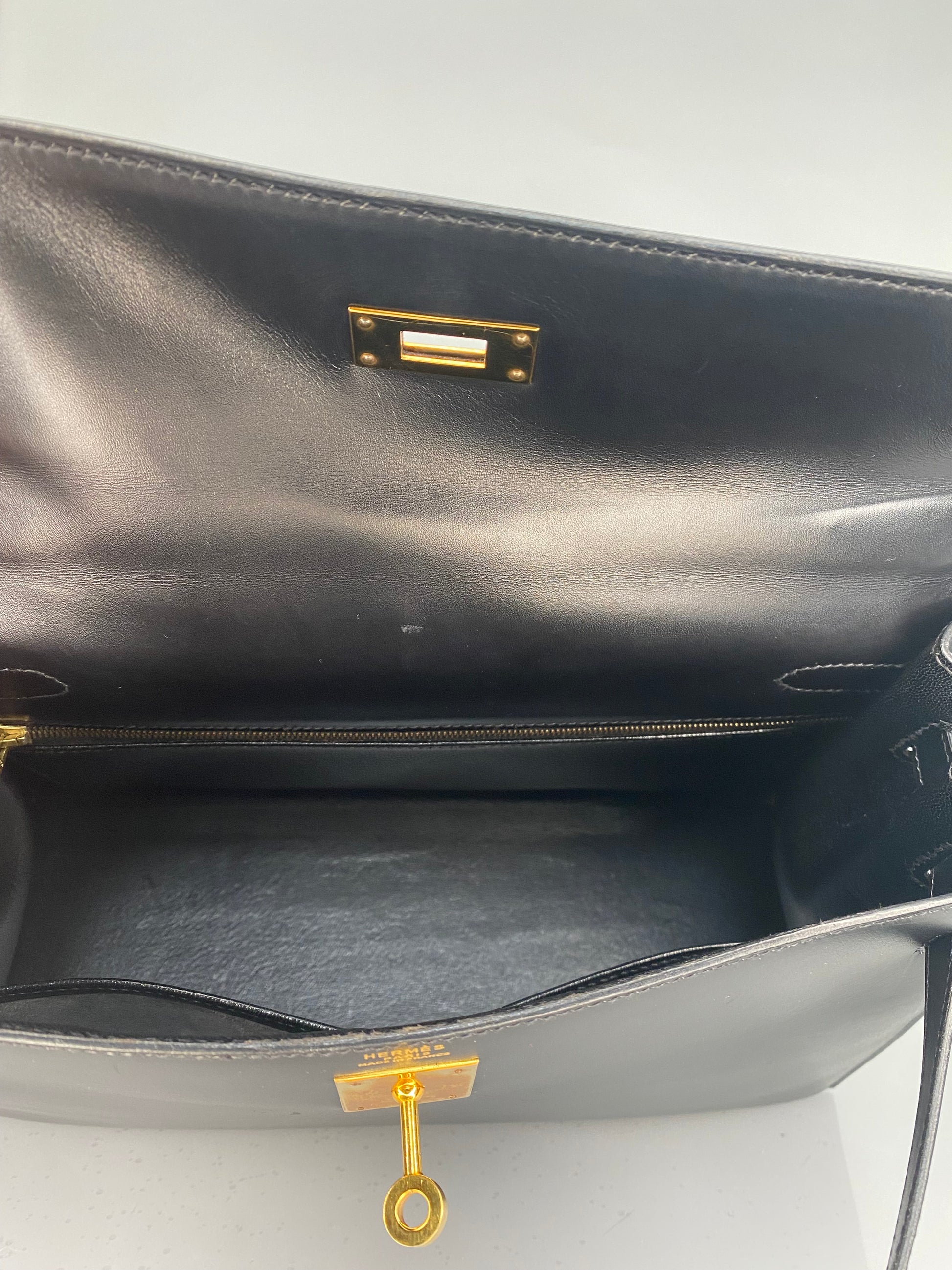 Hermes Vintage Kelly 32 Black Boxcalf Leather