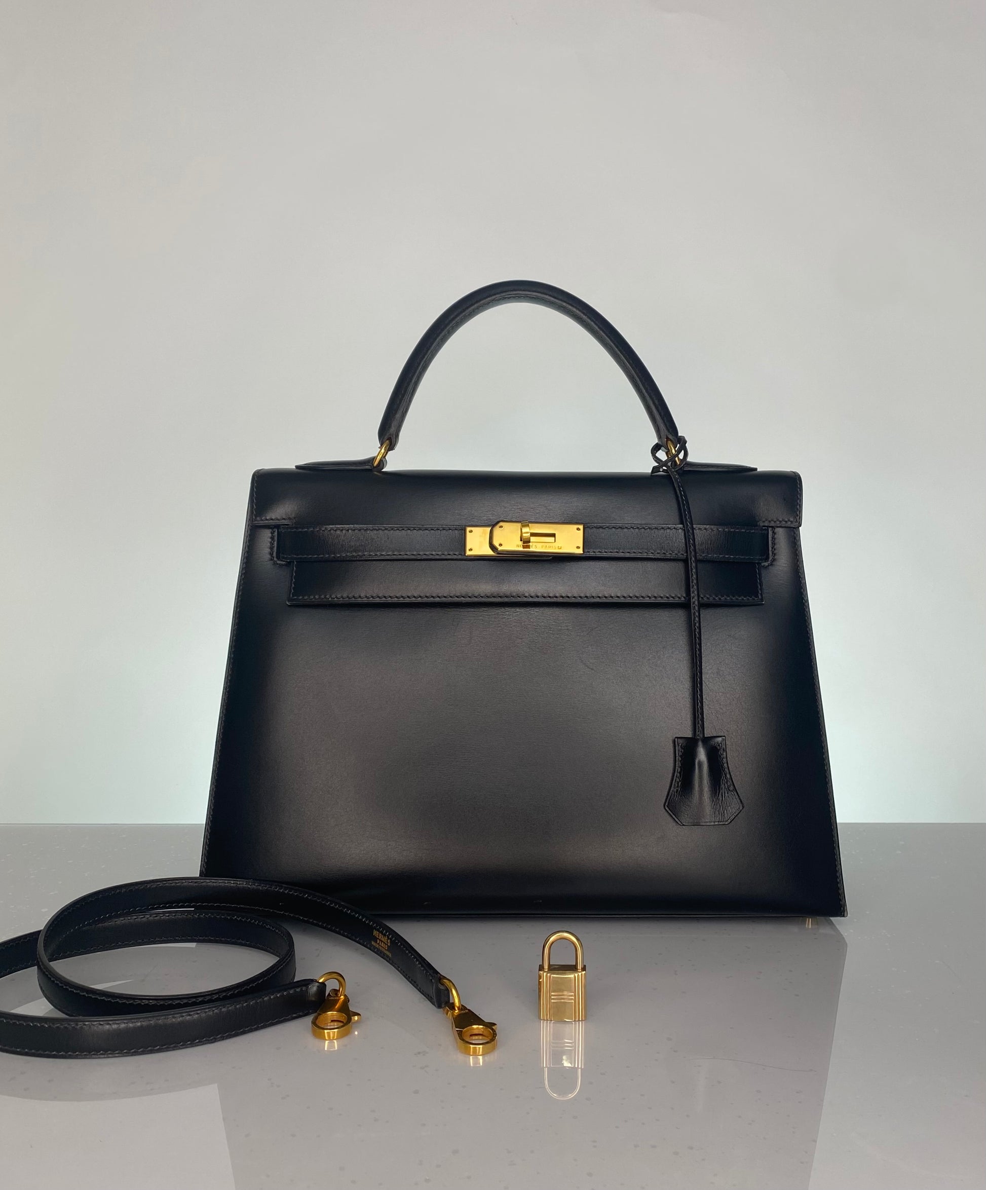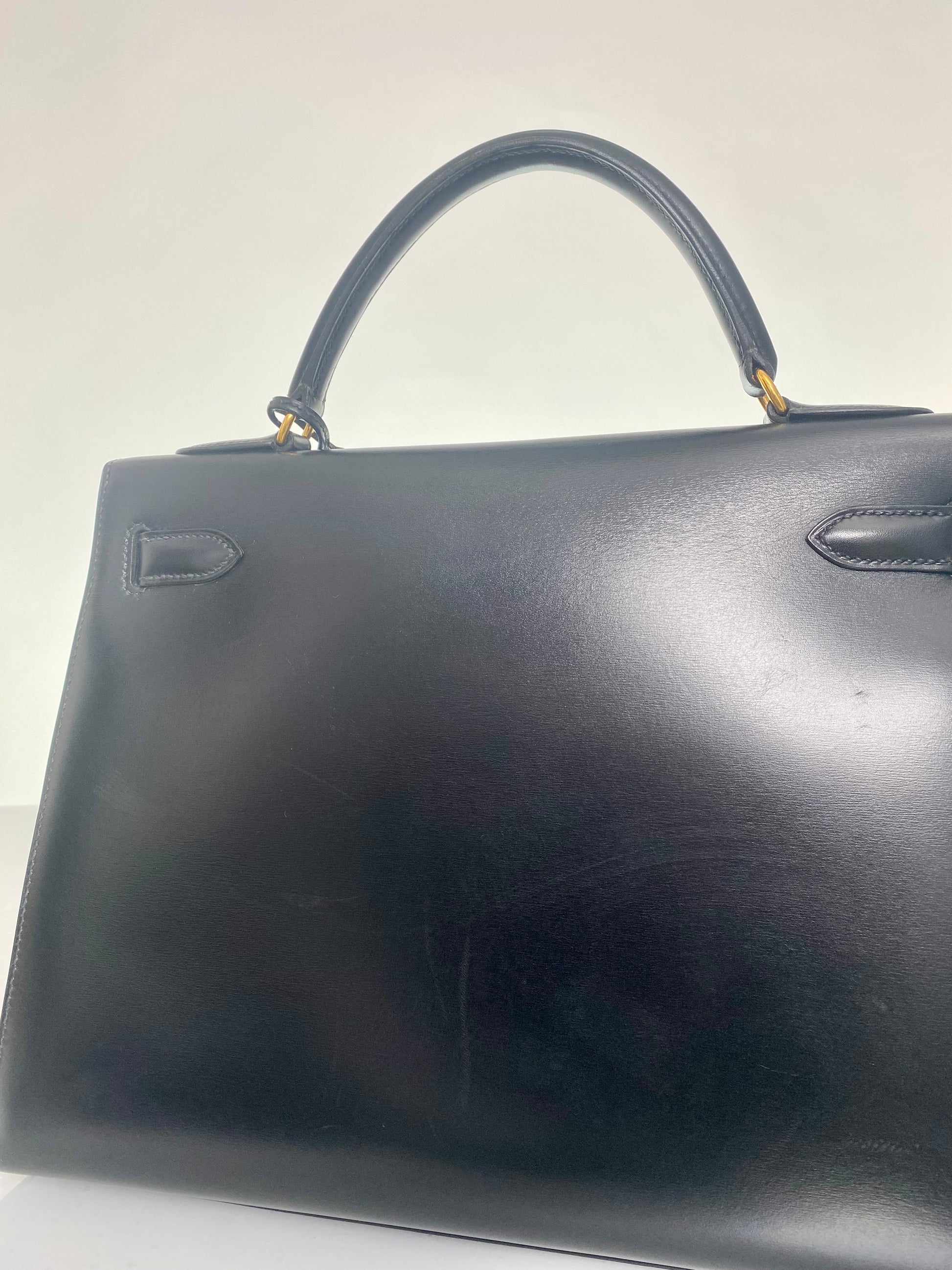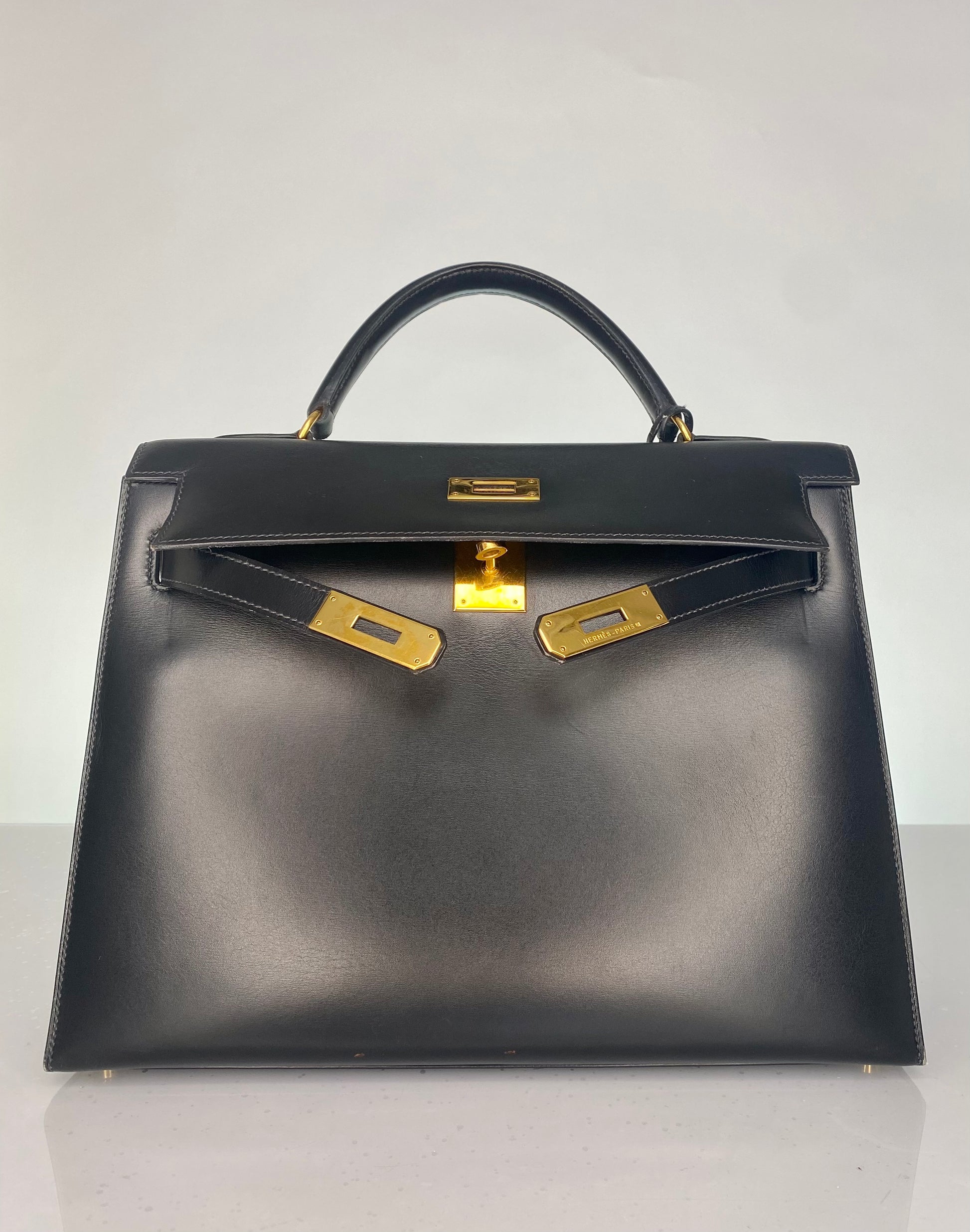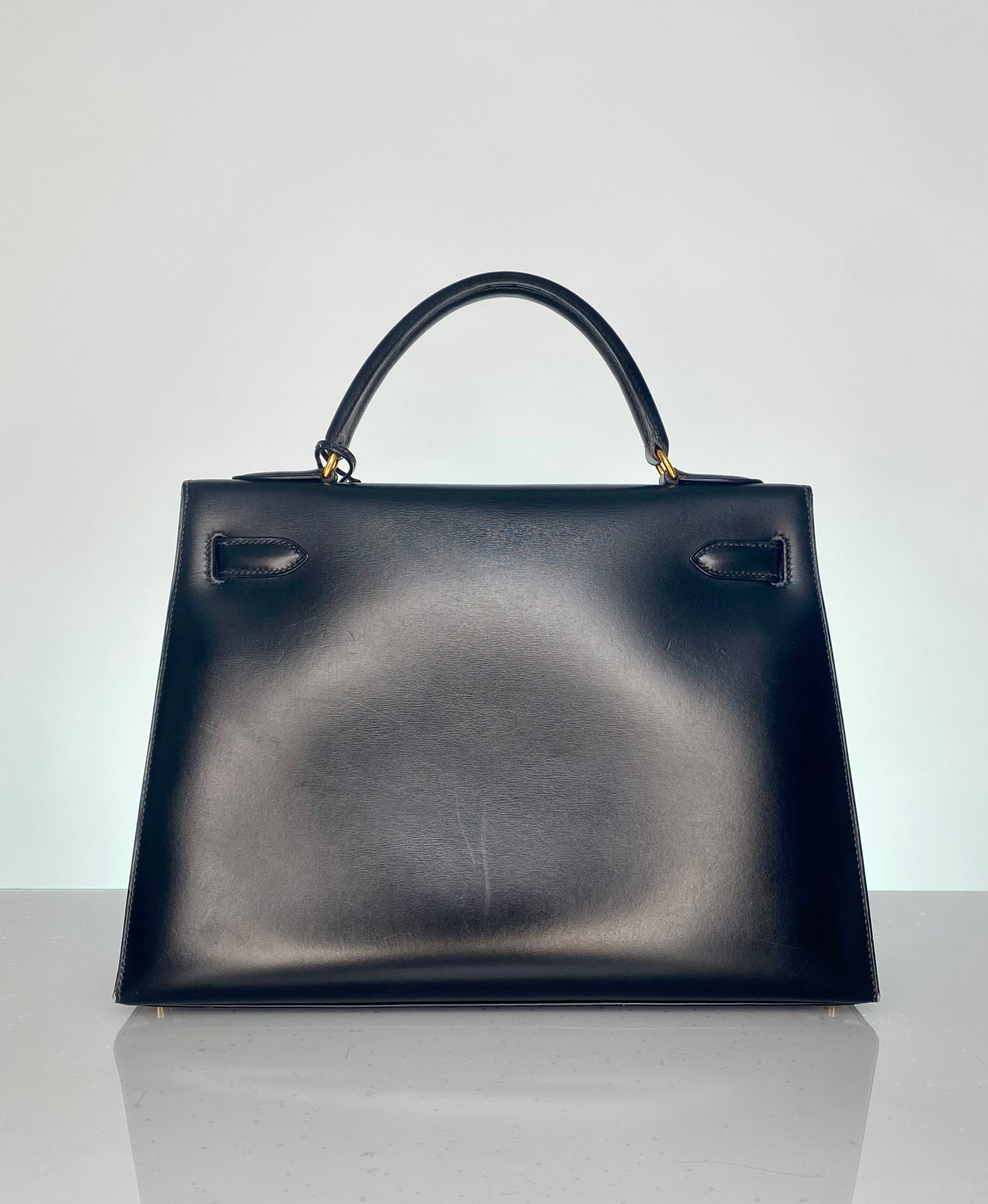 Hermes Vintage Kelly 32 Black Boxcalf Leather