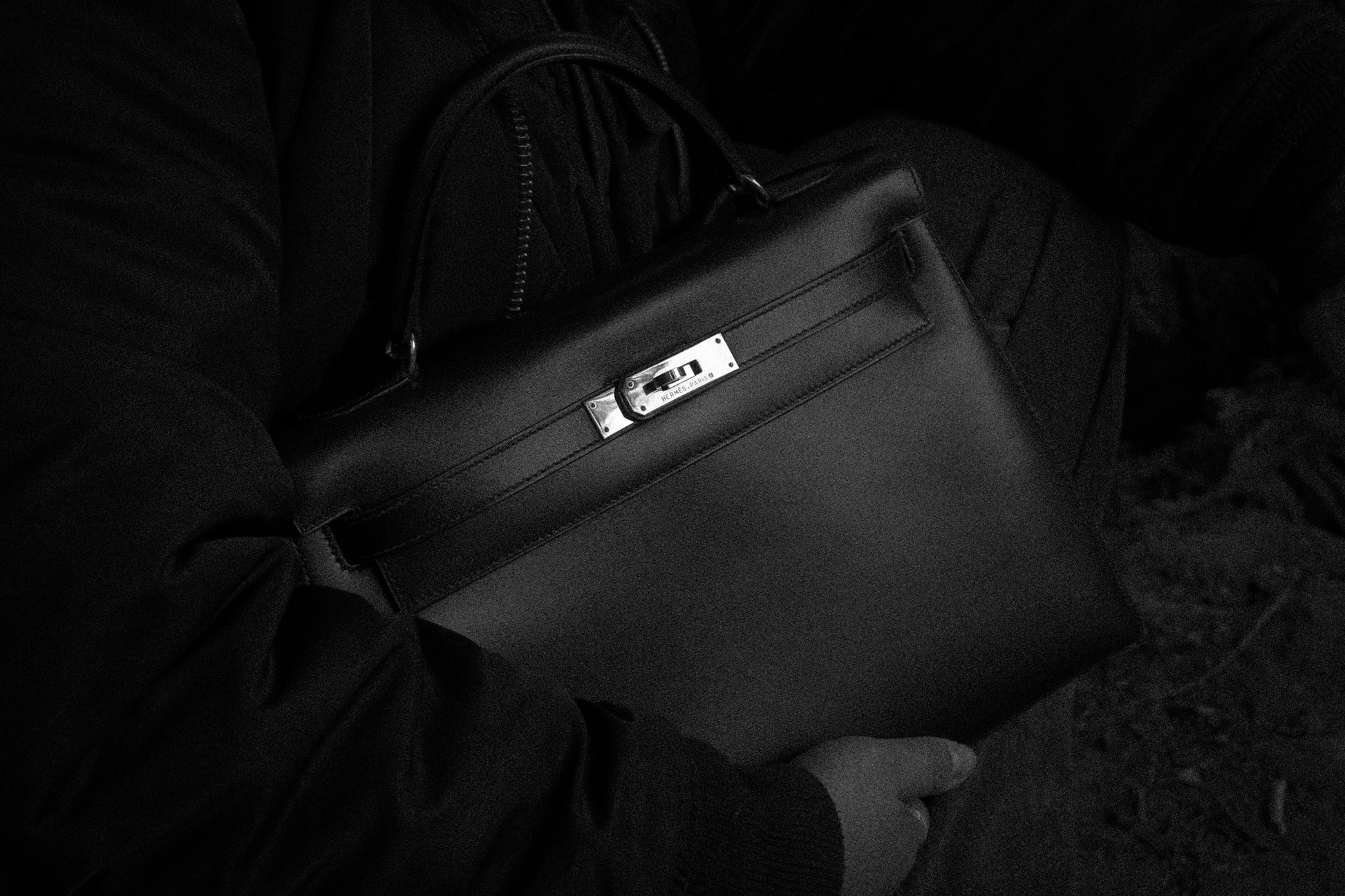 Black Box Calf Leather w/ 18k Gold Plated Hardware, Sellier Stitching