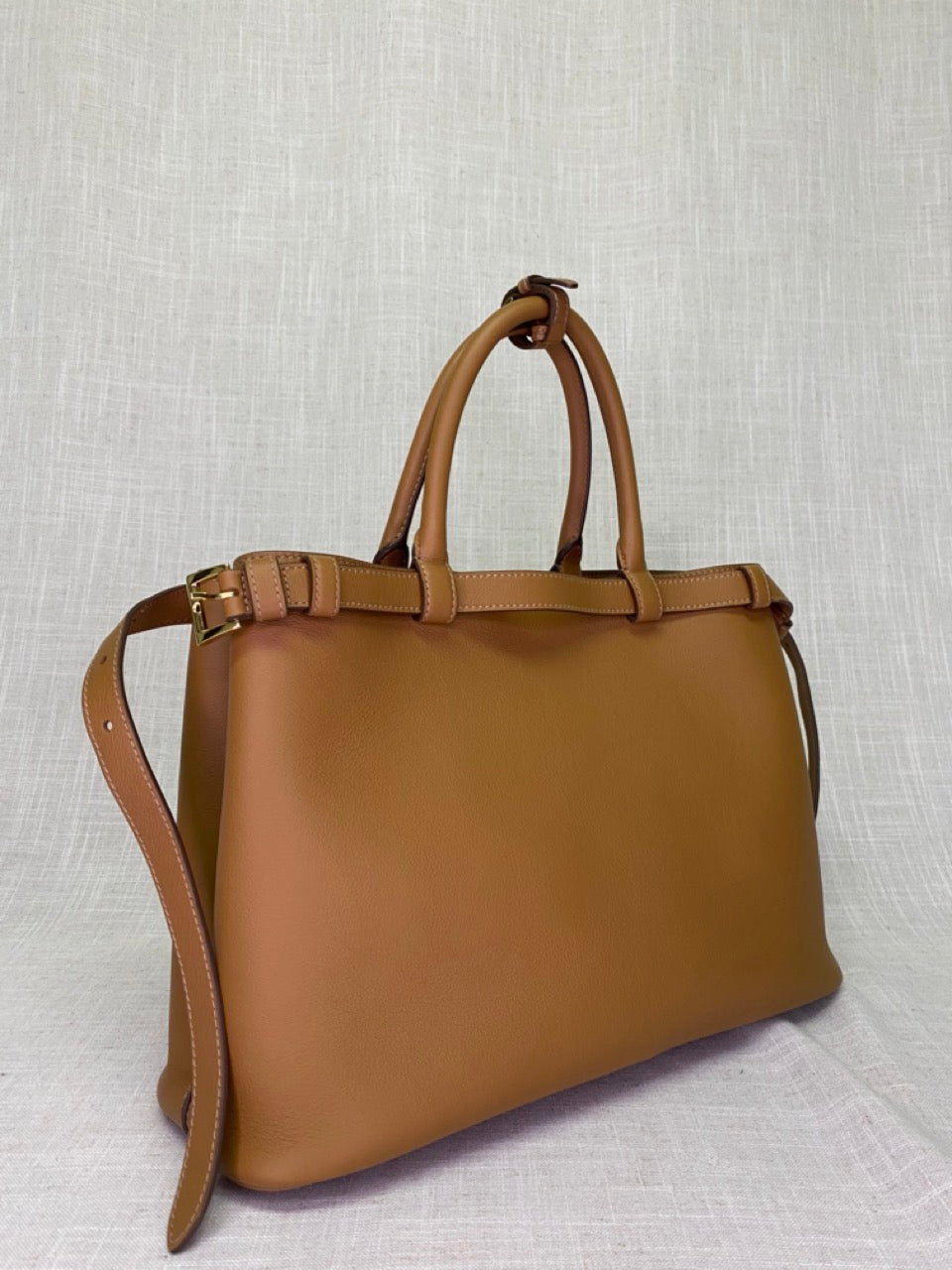 Leather Handles w/ Double Belt Detail and Detachable Shoulder Strap