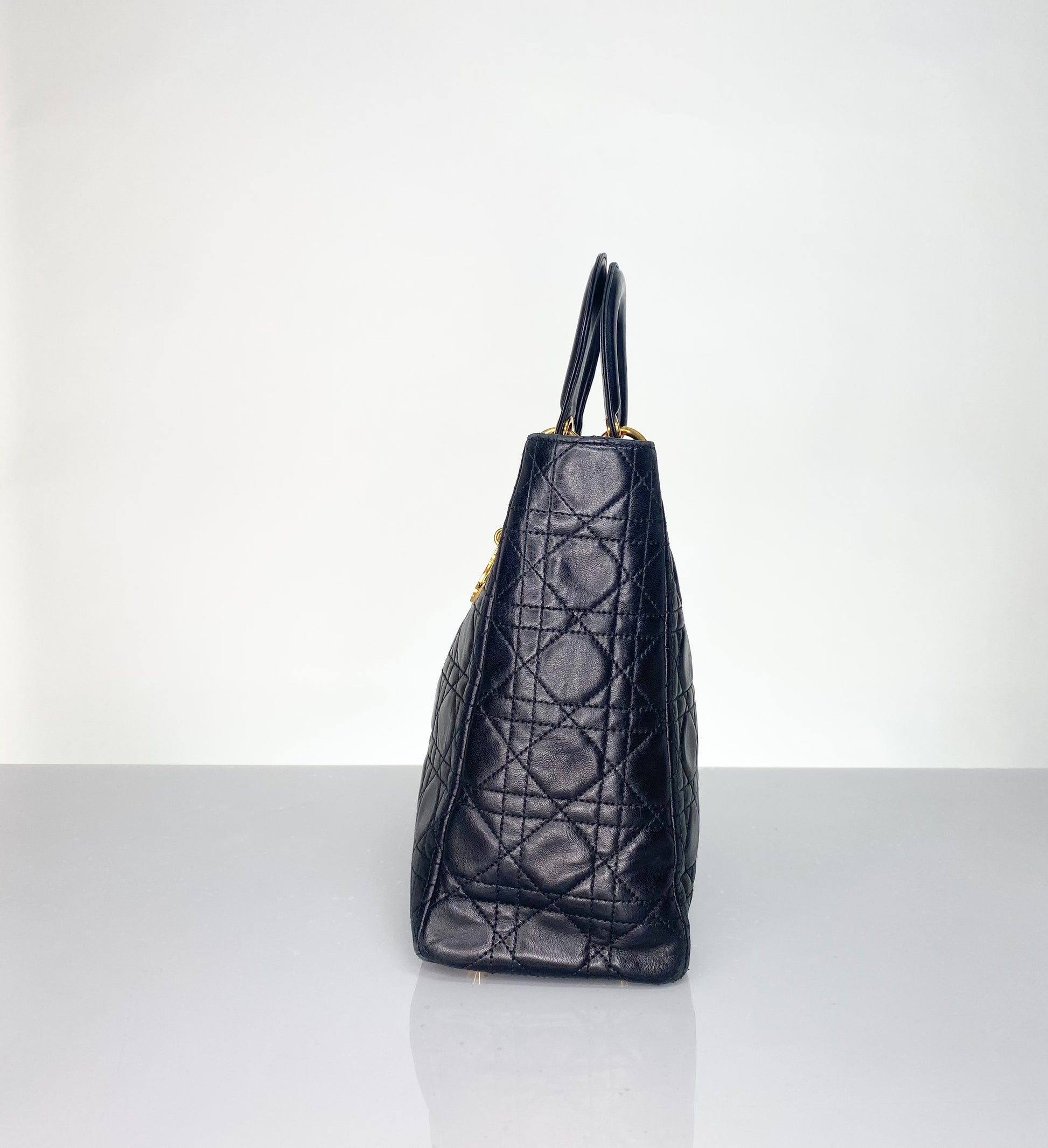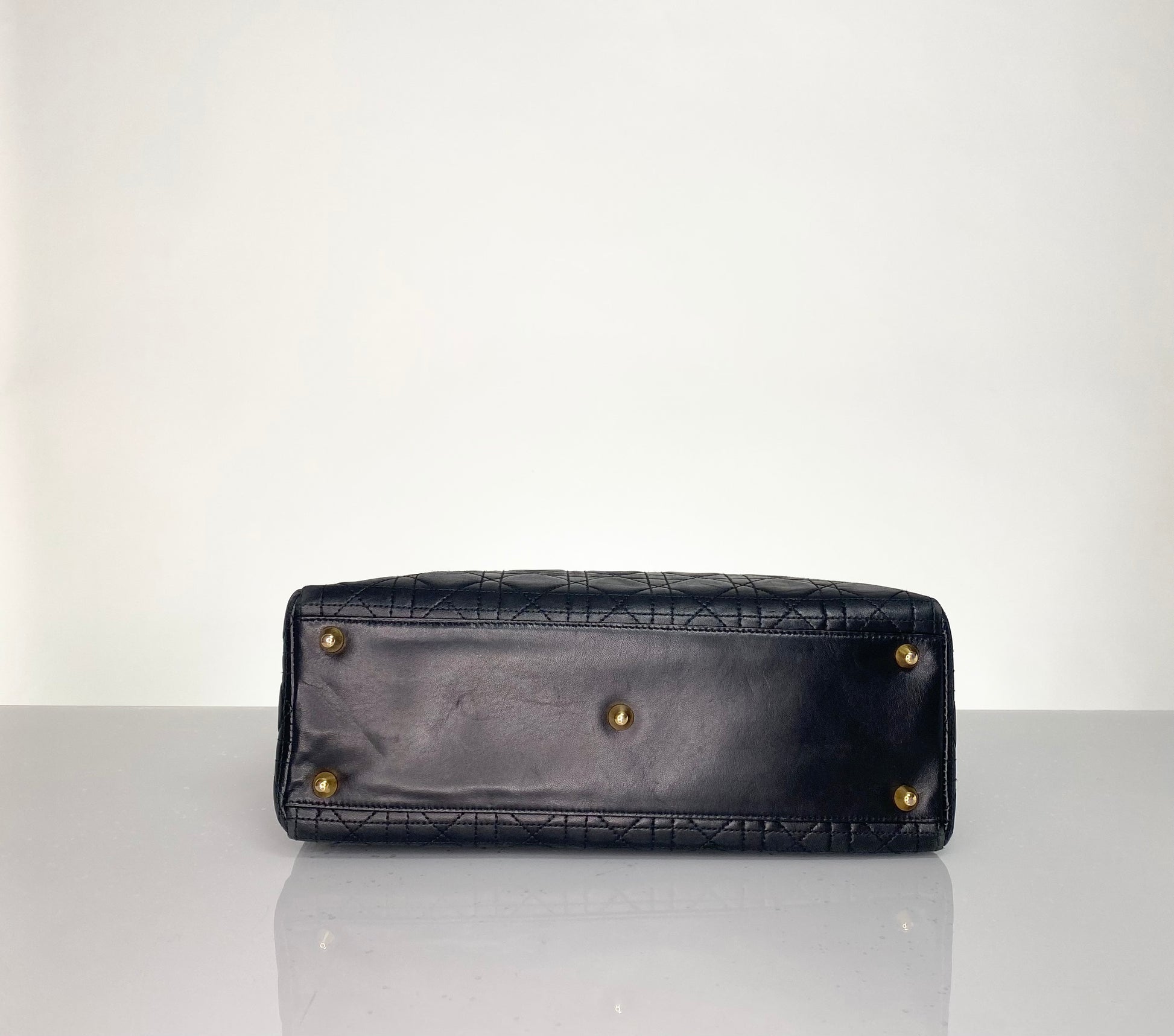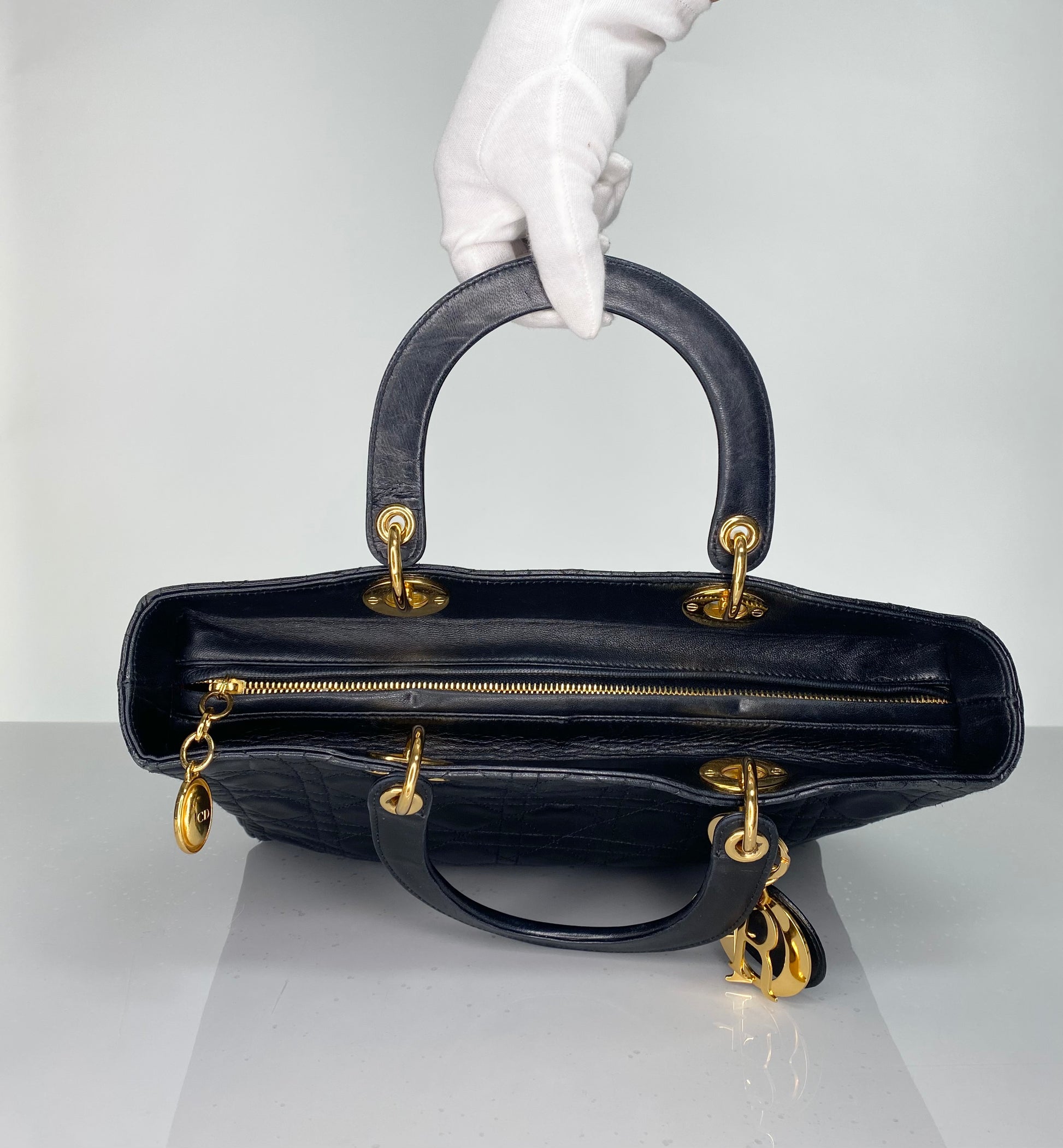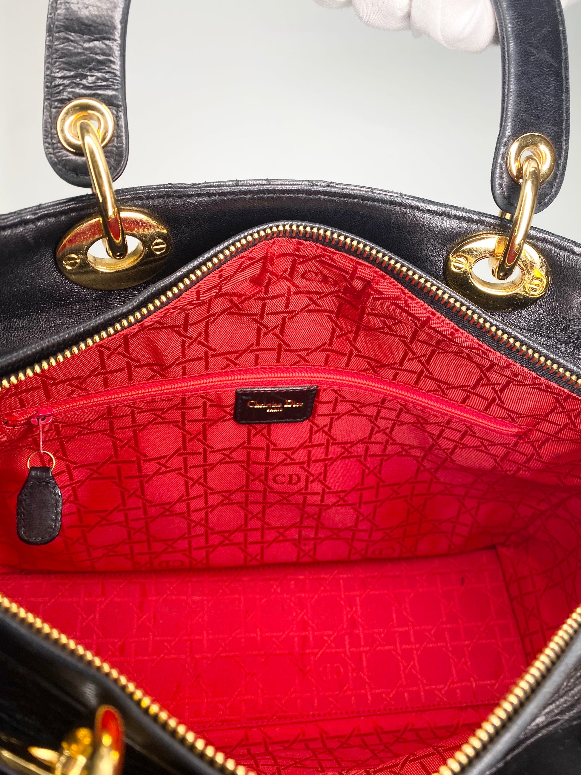 Very Elegant Christian Dior Lady Dior Cannage Leather 2 Way Handbag, Size Large