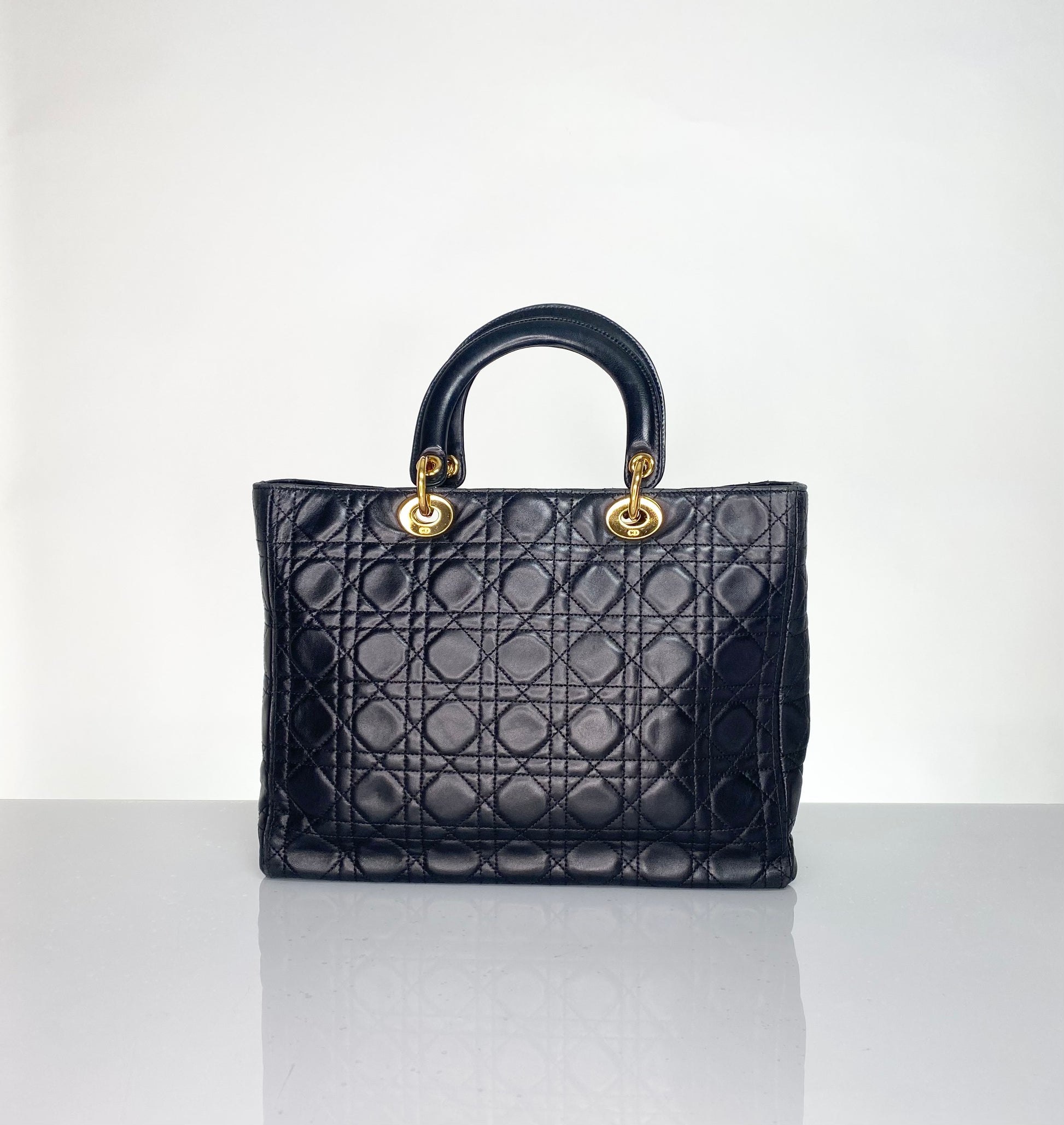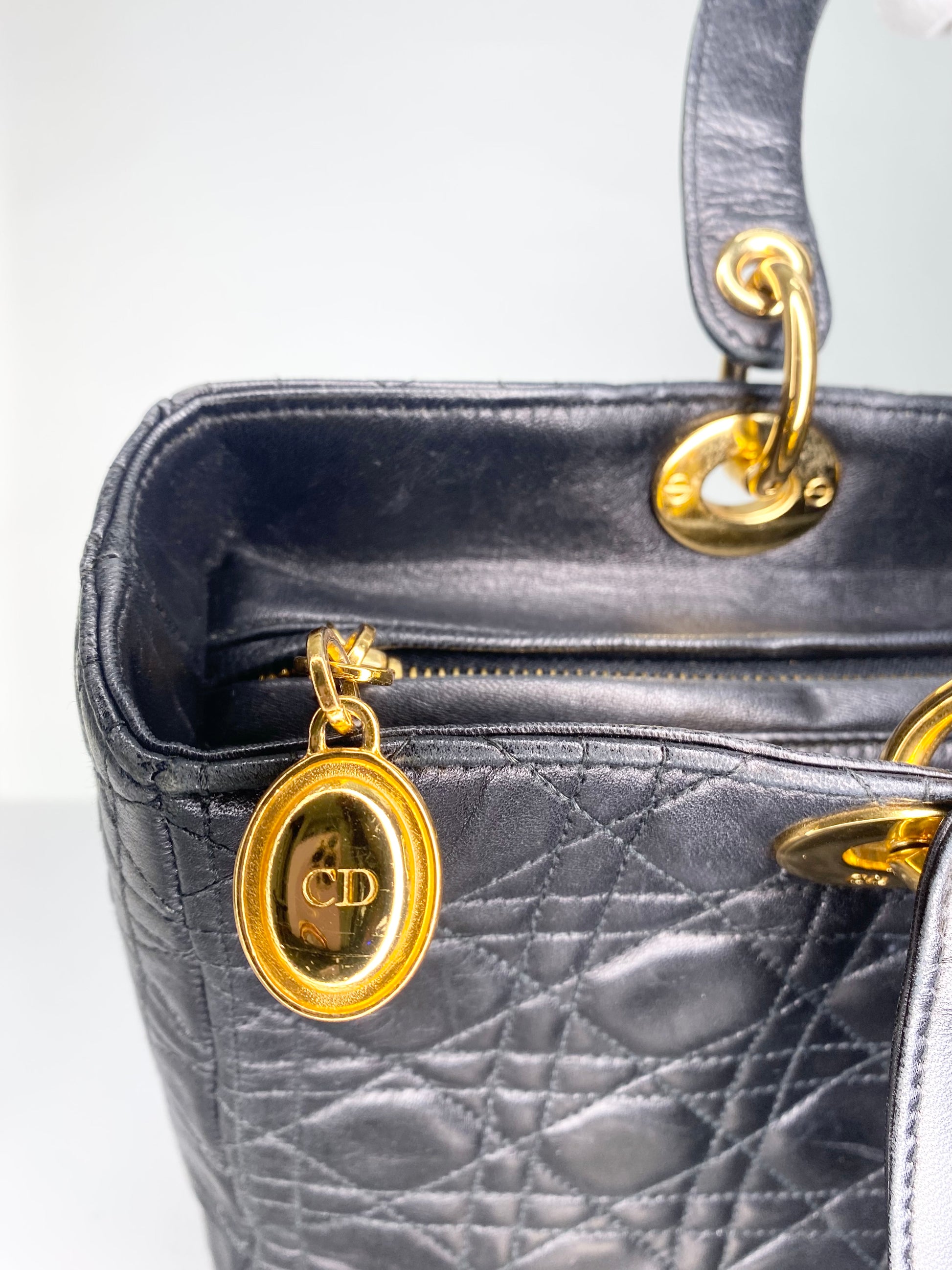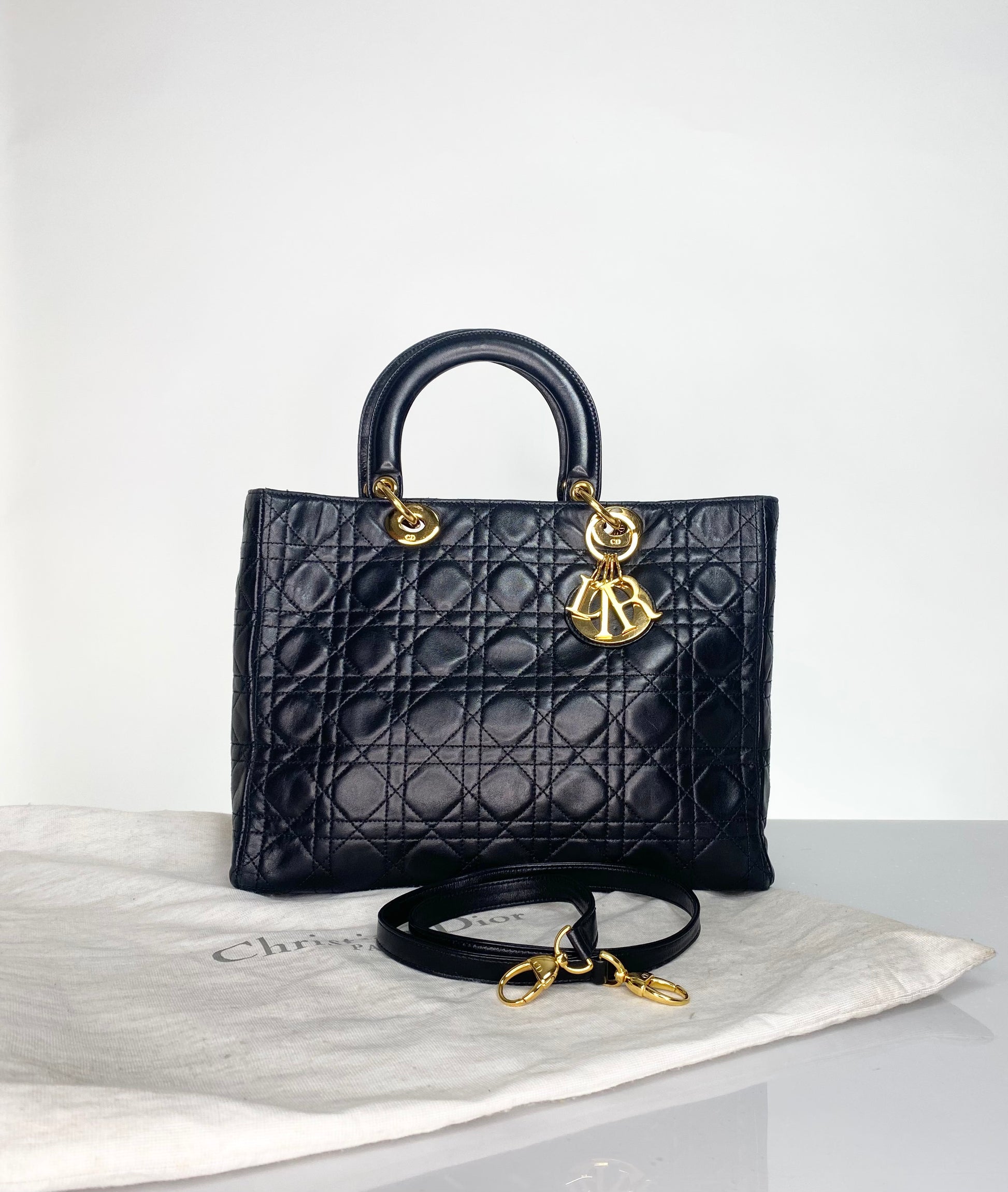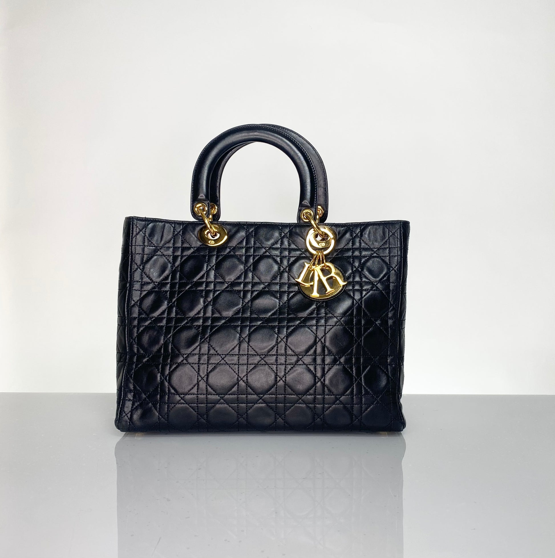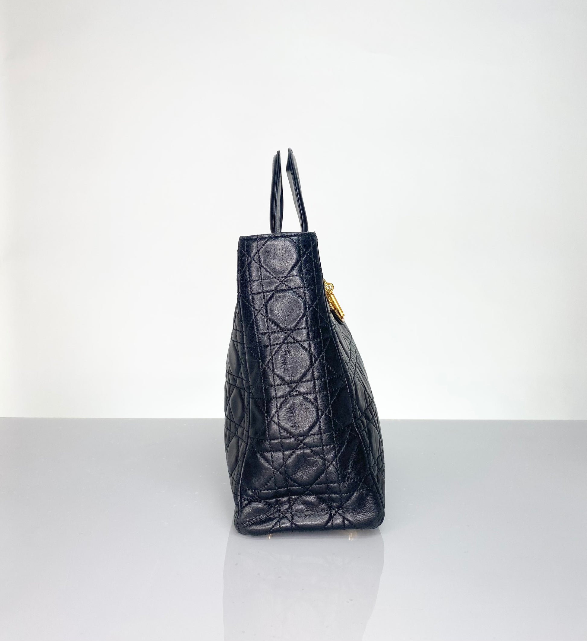 Very Elegant Christian Dior Lady Dior Cannage Leather 2 Way Handbag, Size Large