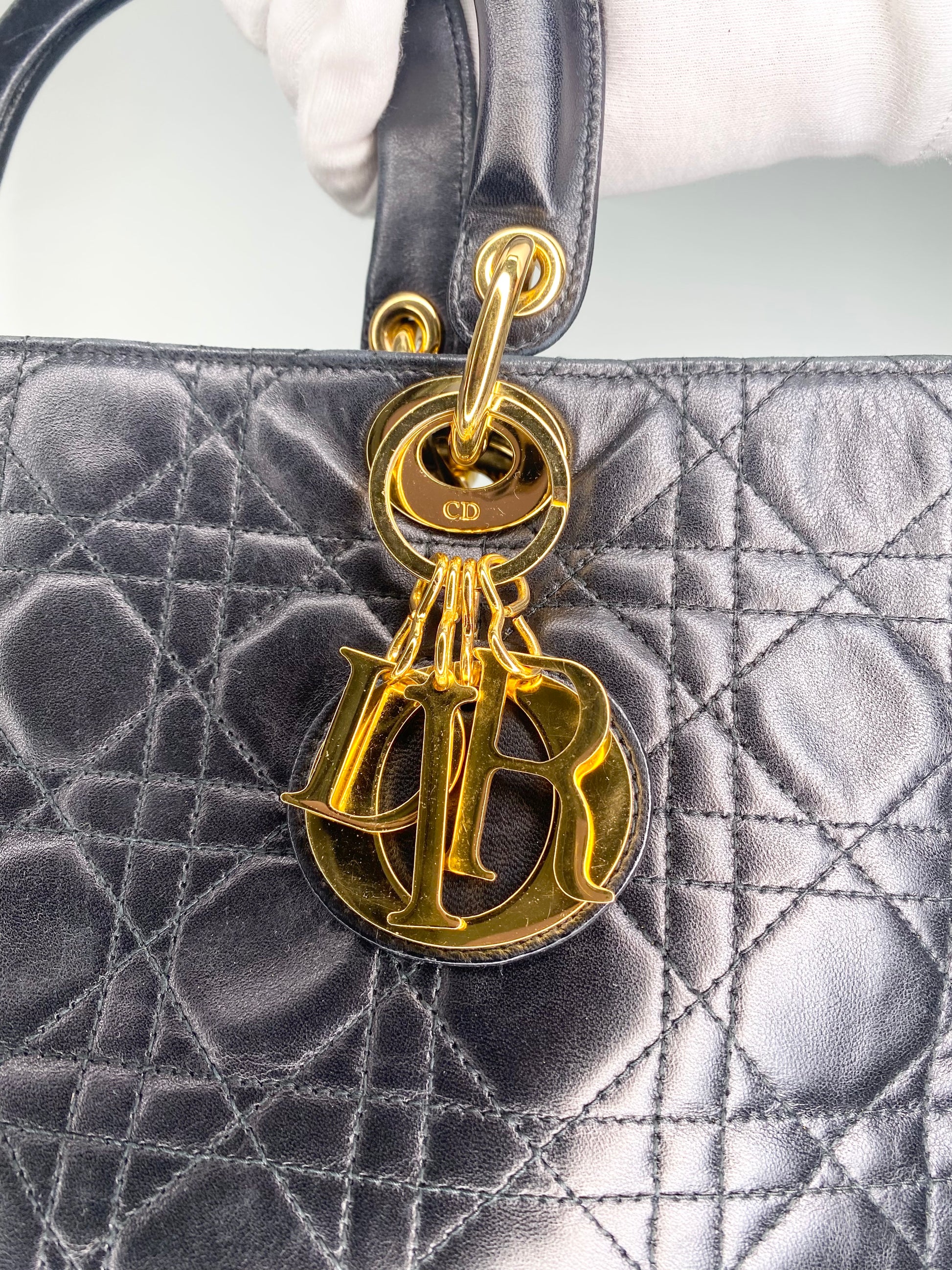 Black Lambskin Quilted Leather w/ Goldtone DIOR Charms