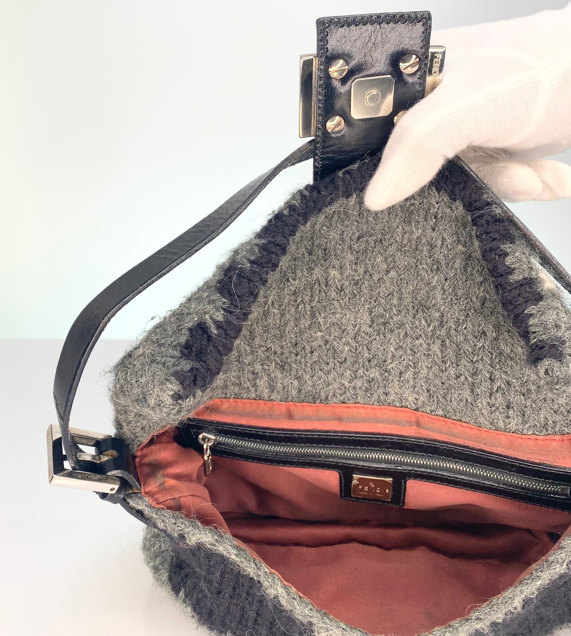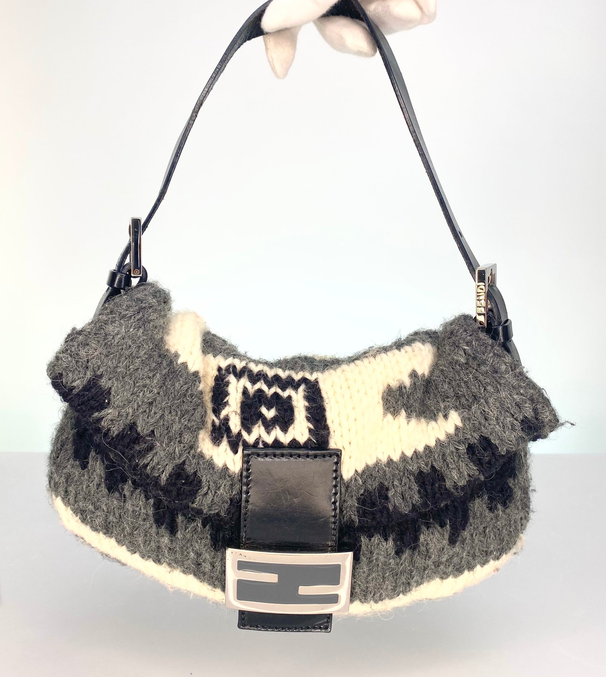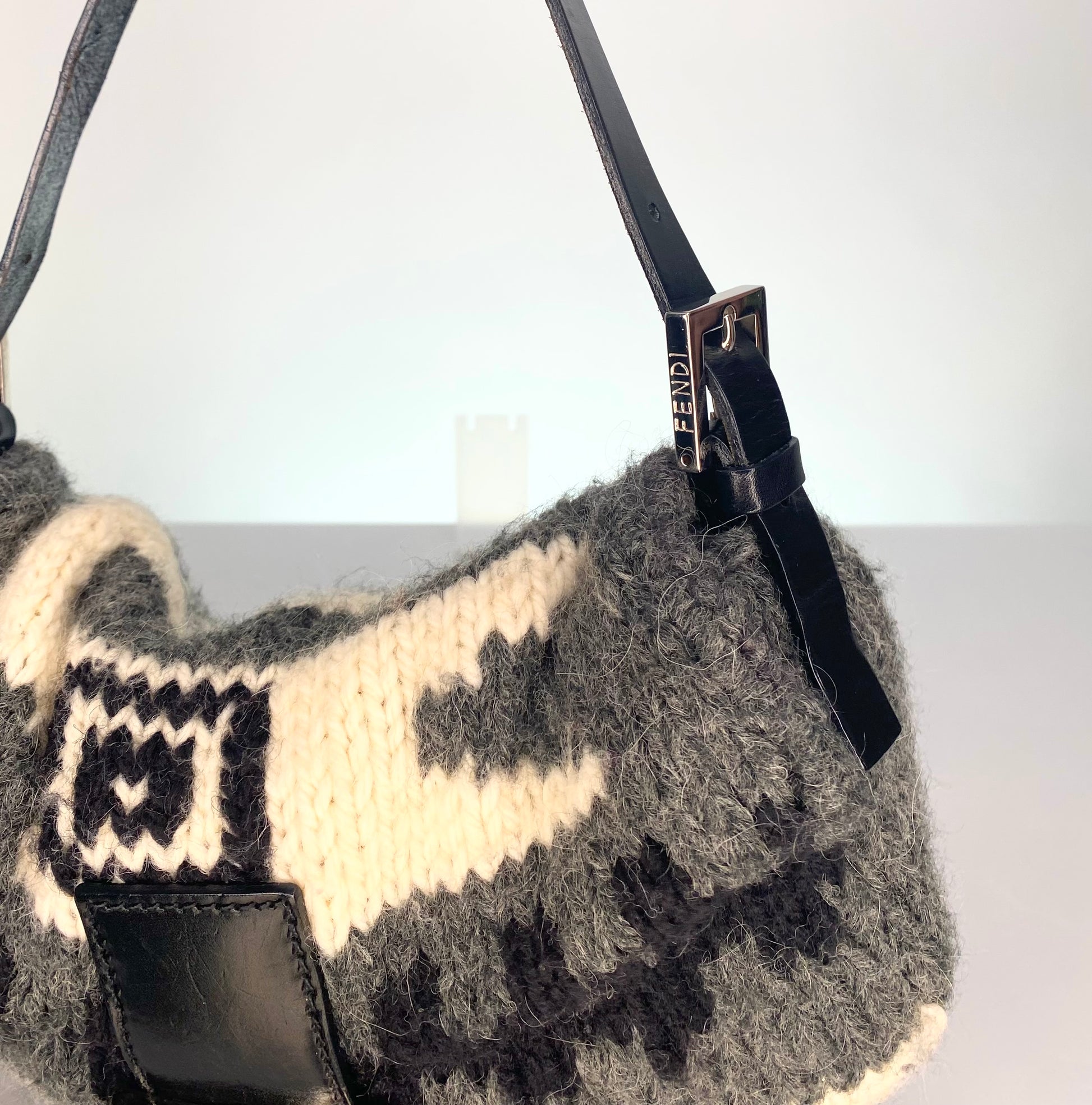 Preloved Early 2000's Fendi Wool Sweater Knit Baguette Bag