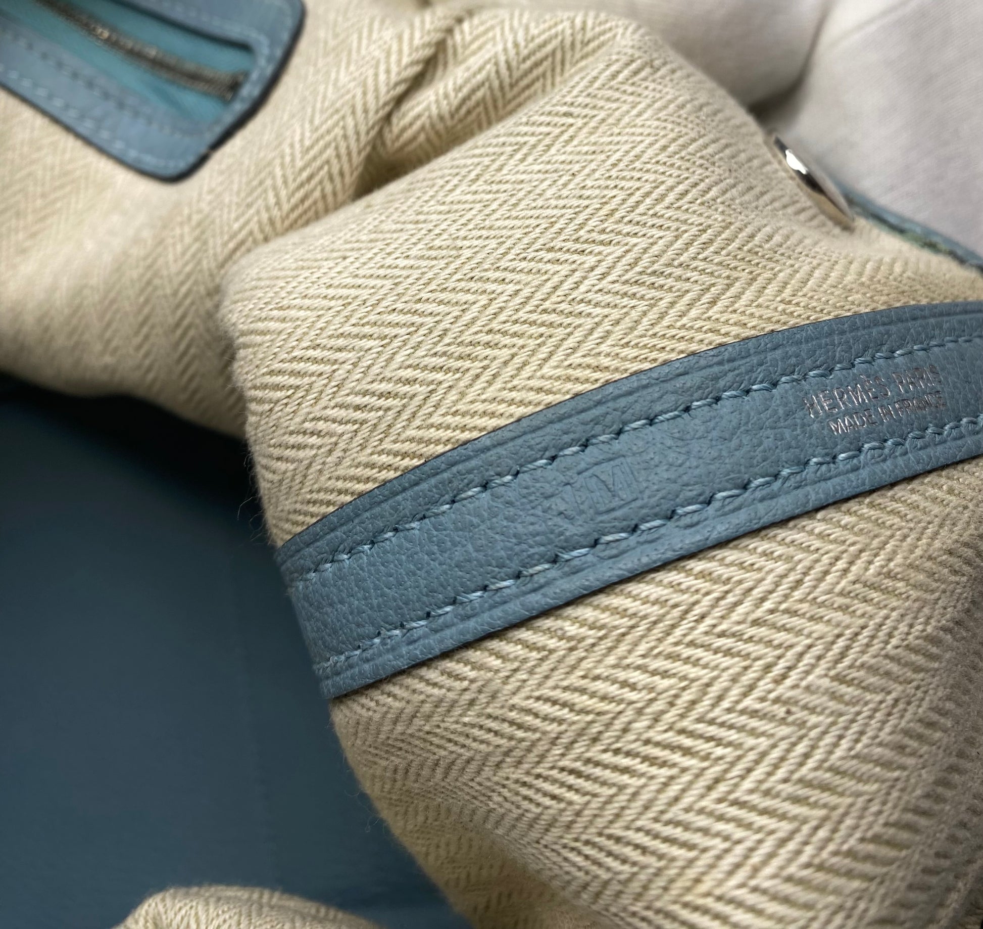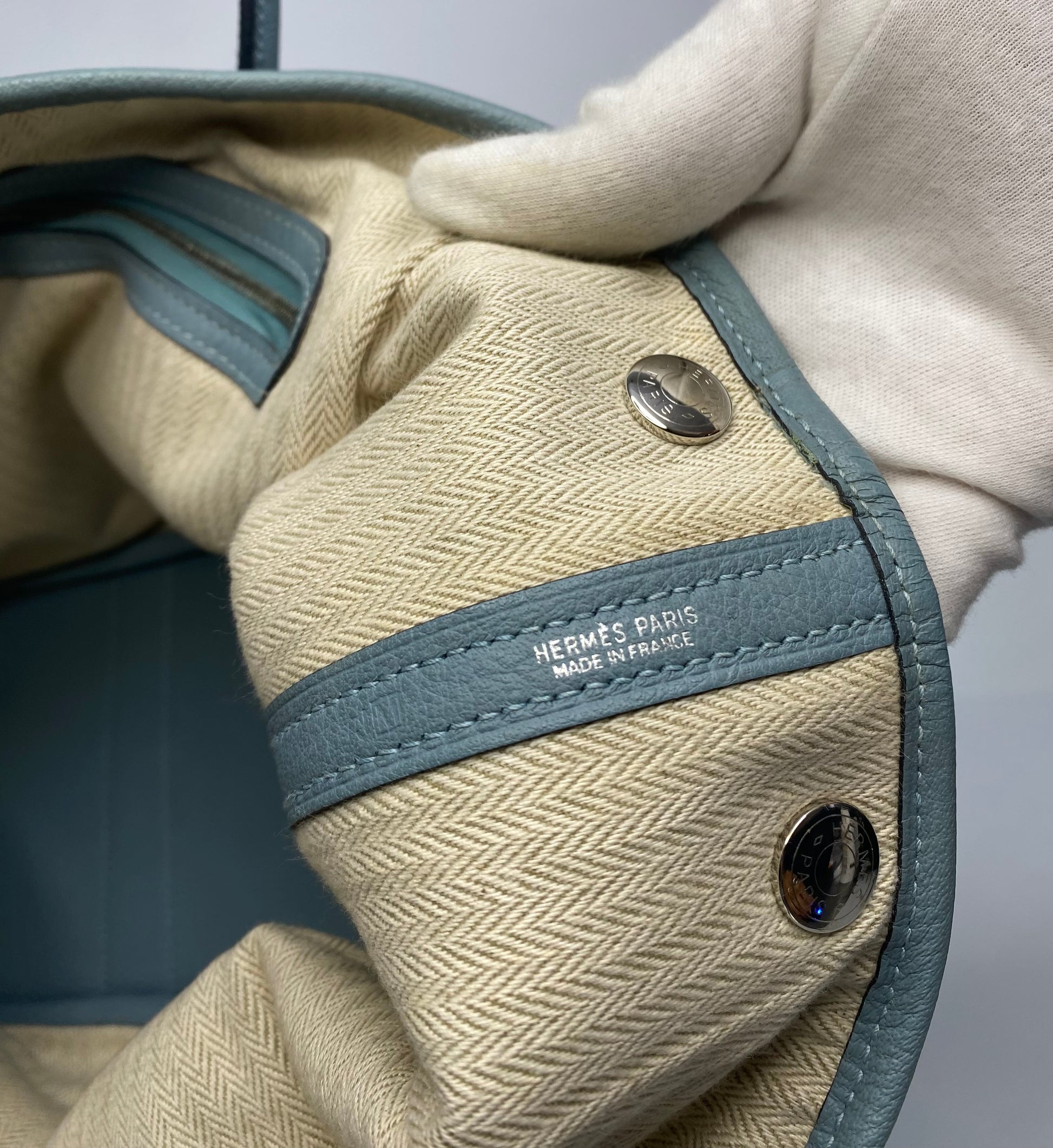 Preloved Hermes Garden Party PM 30 Blue Lin Negonda