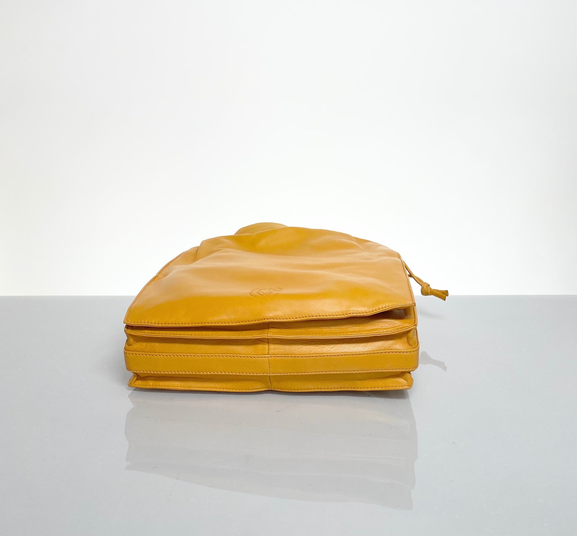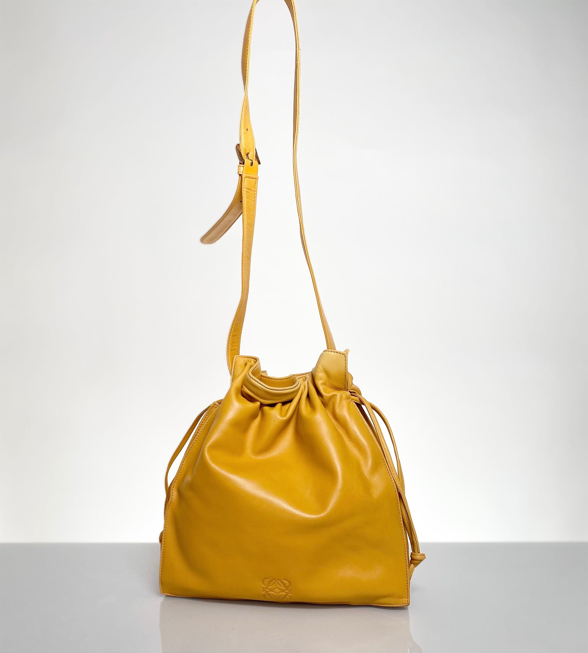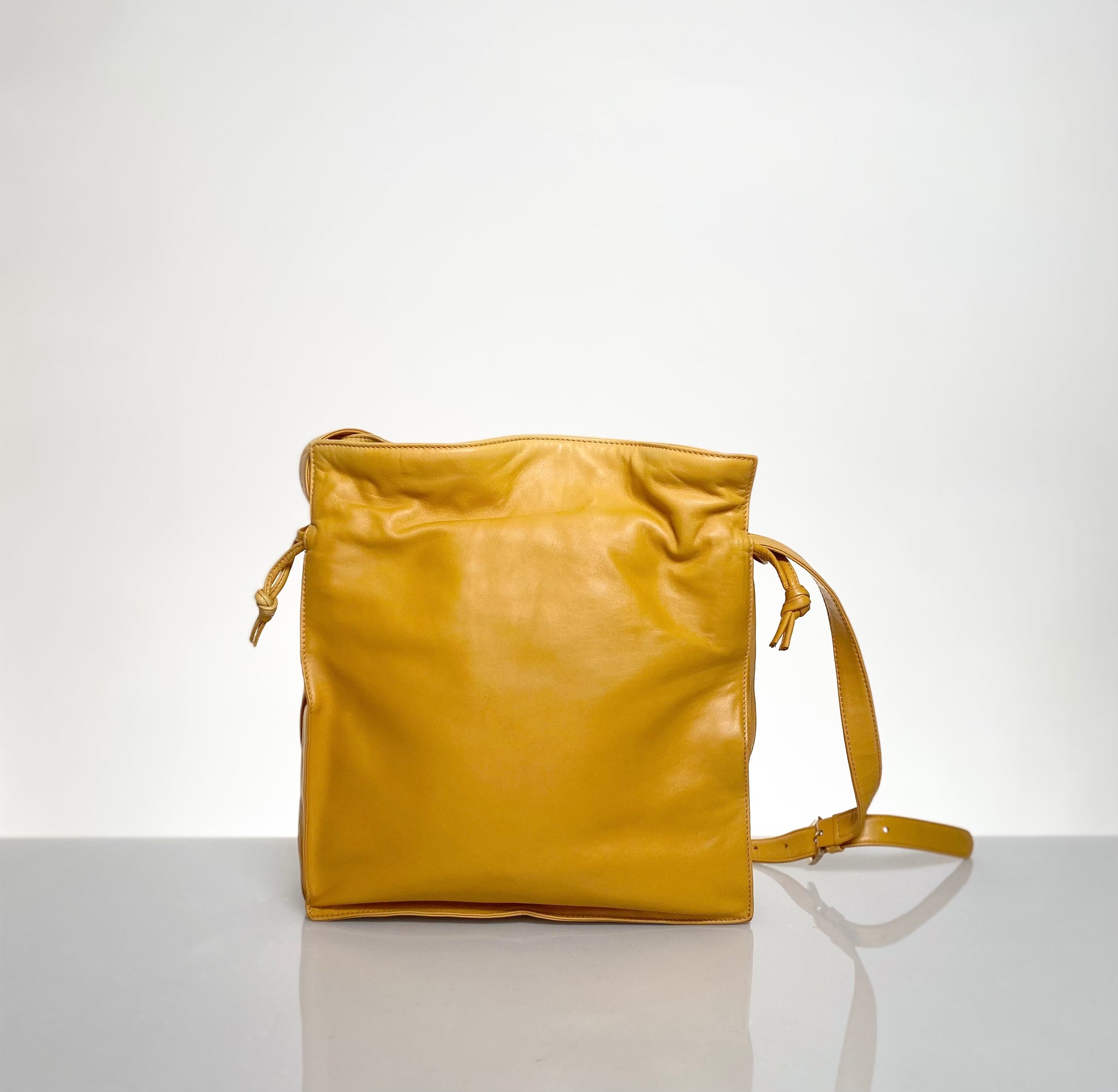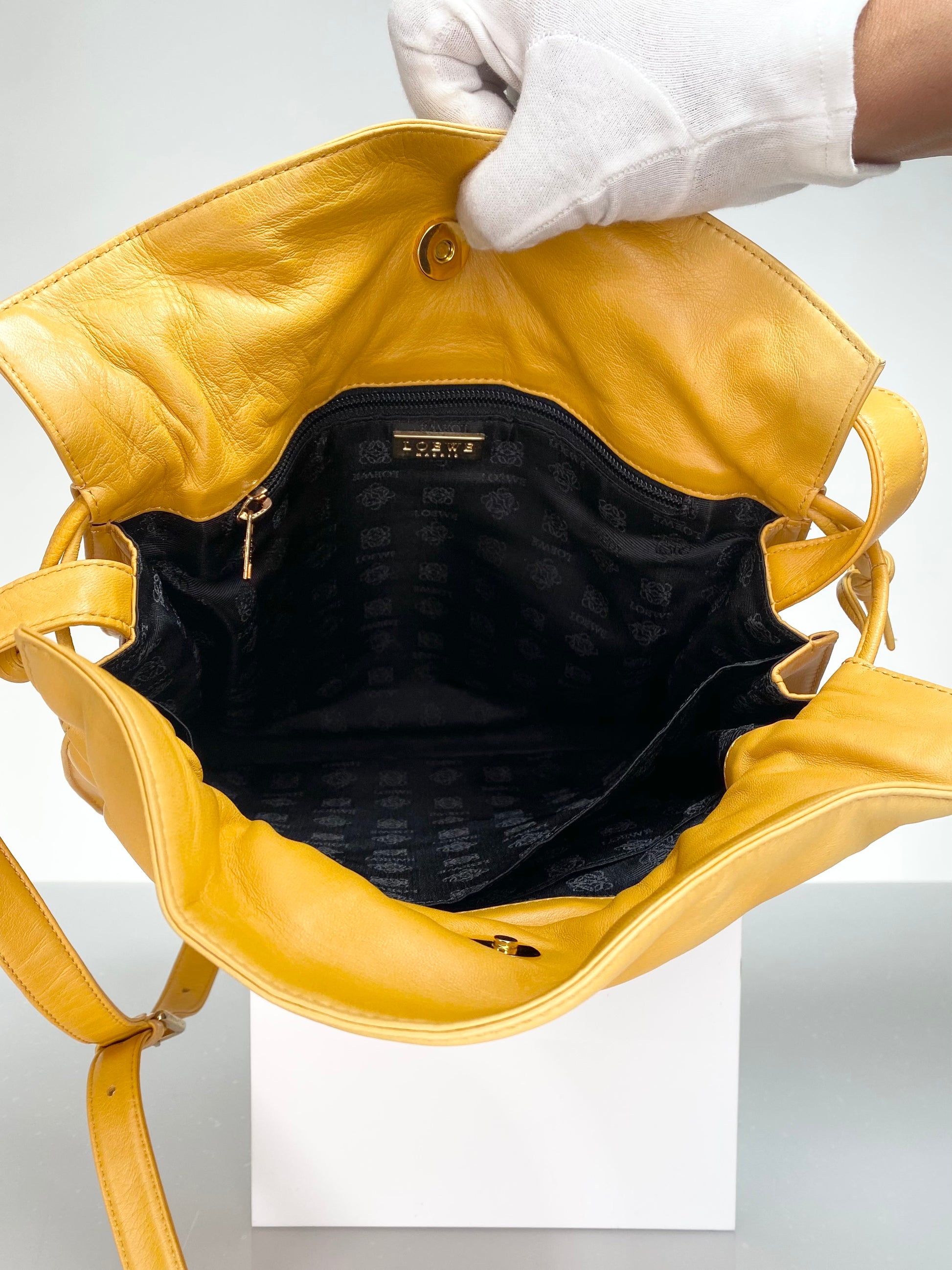 Soft Nappa Leather Preloved Loewe Flamenco Bag in Deep Amber Yellow Color, circa 2000's