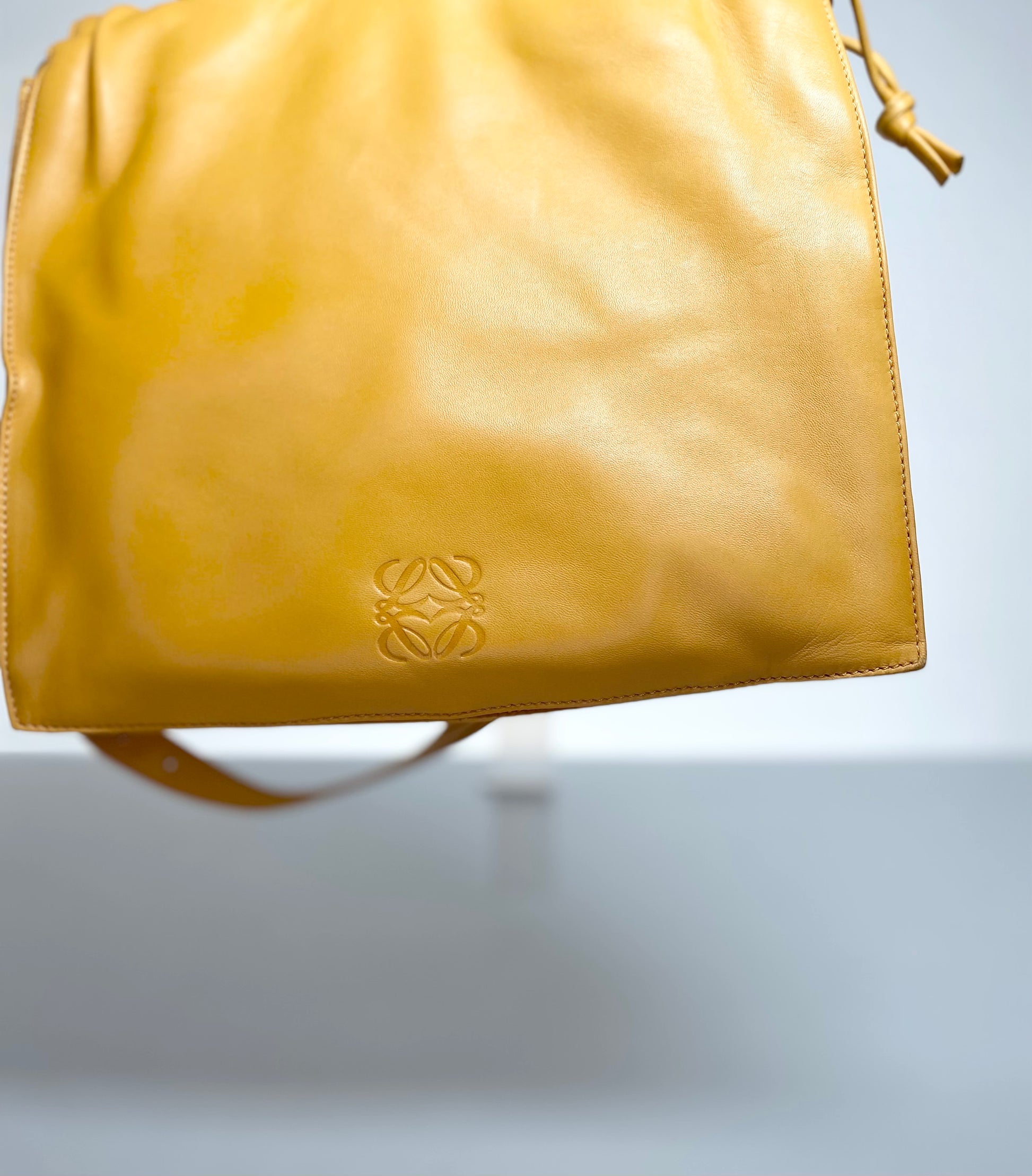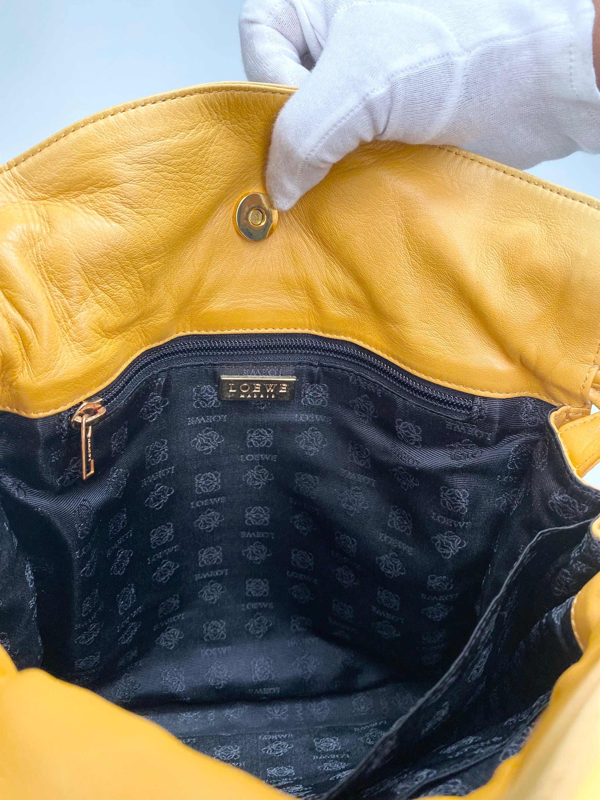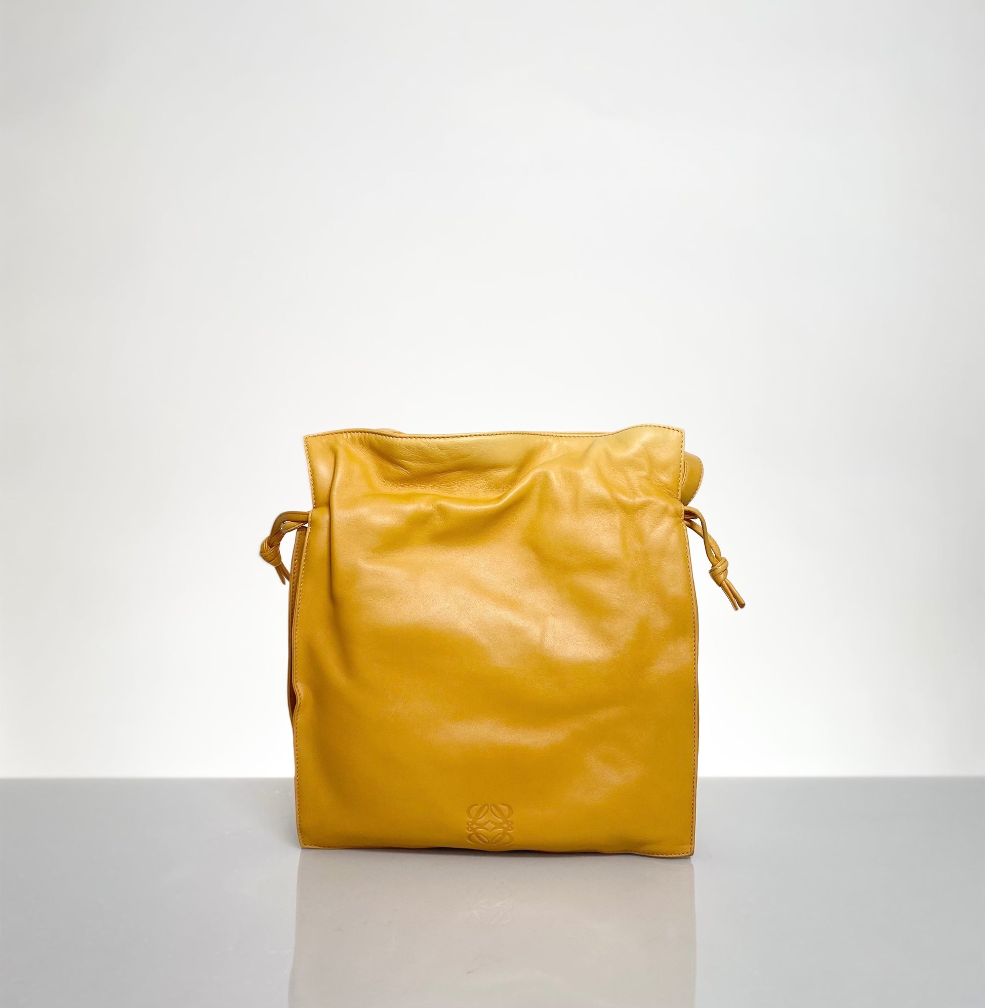 Soft Nappa Leather Preloved Loewe Flamenco Bag in Deep Amber Yellow Color, circa 2000's