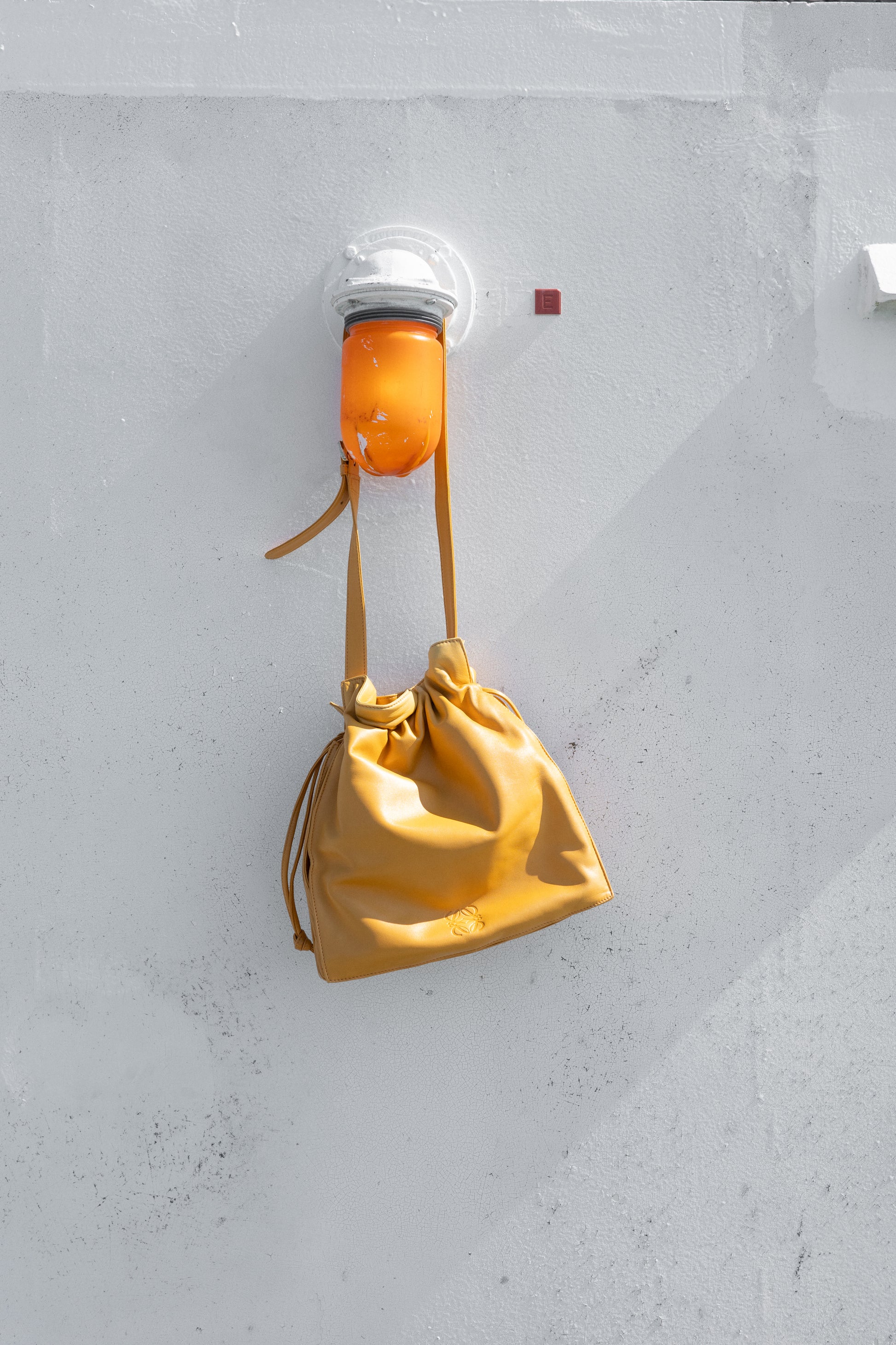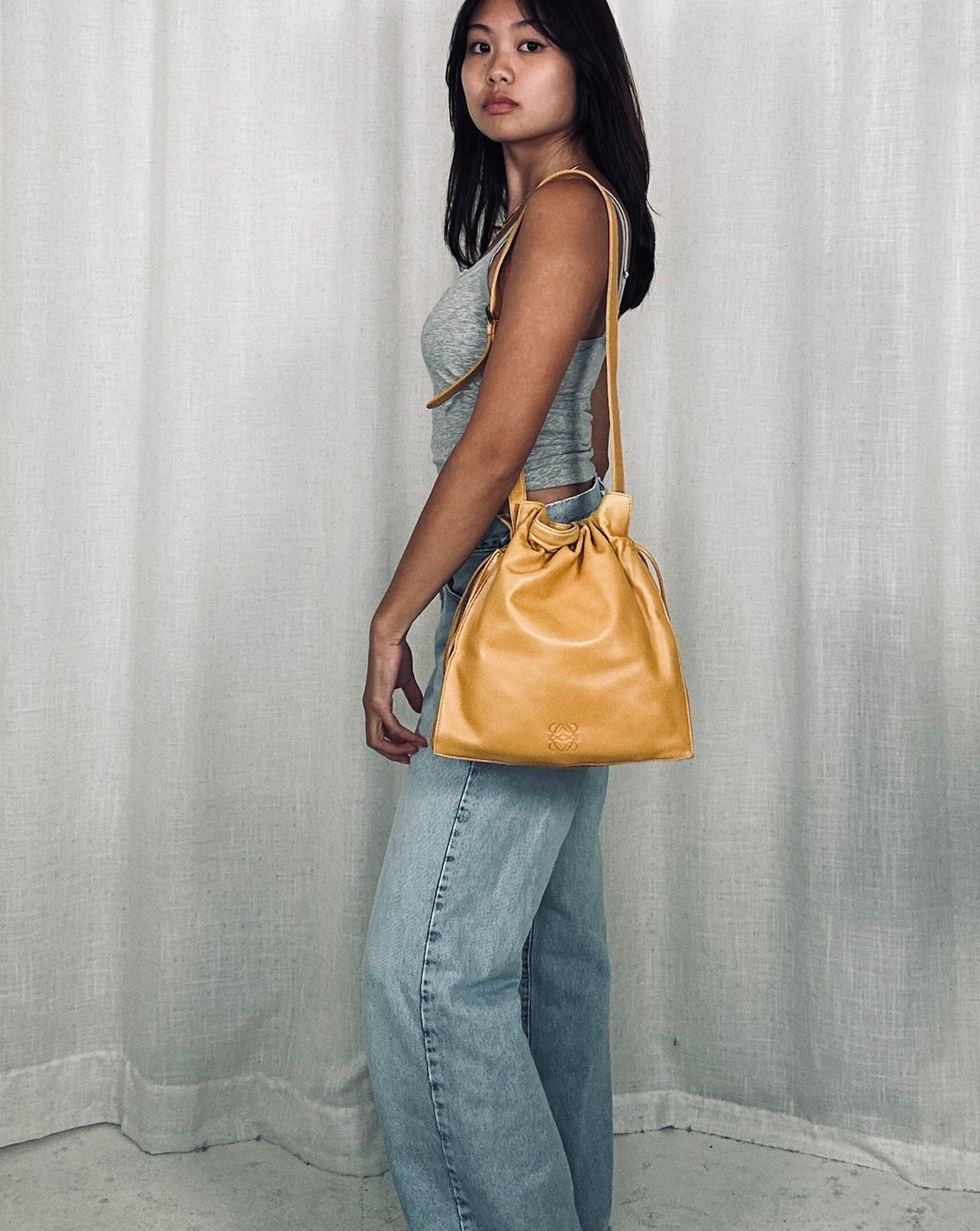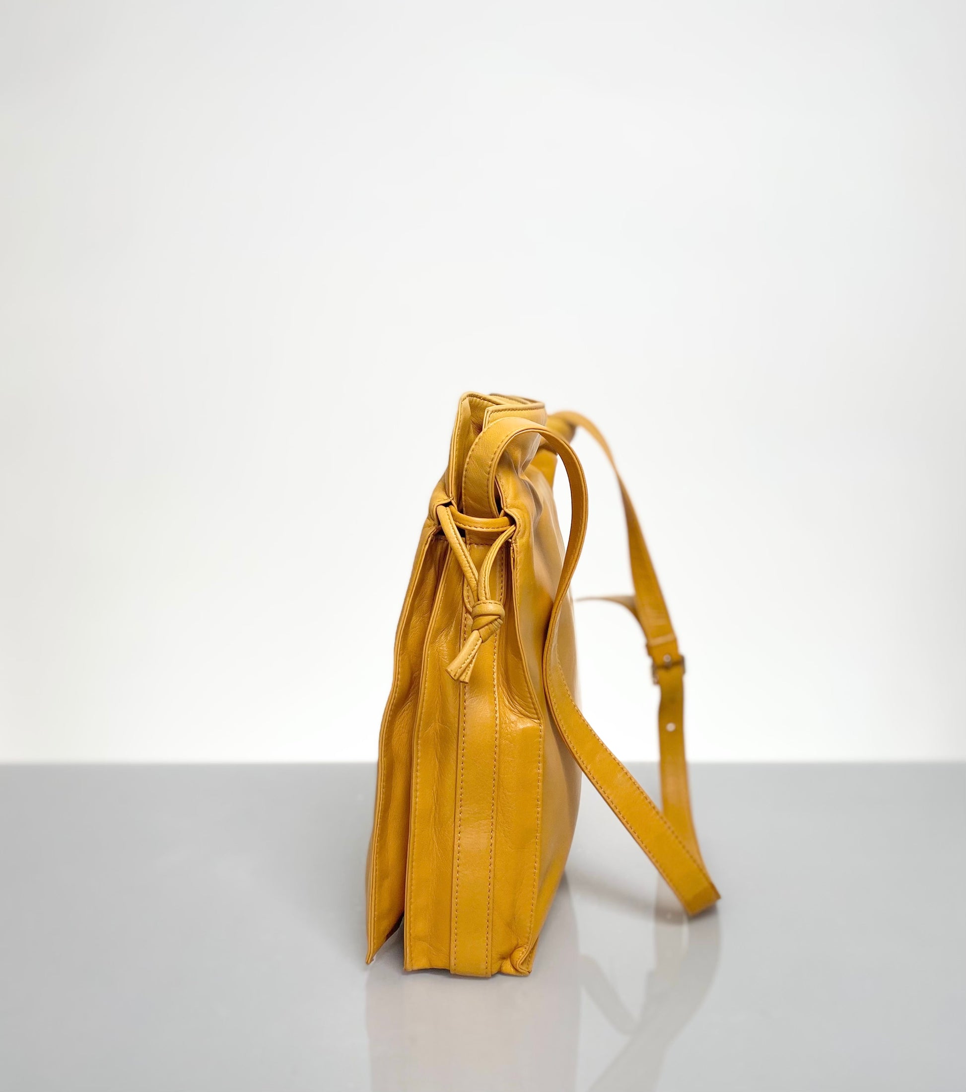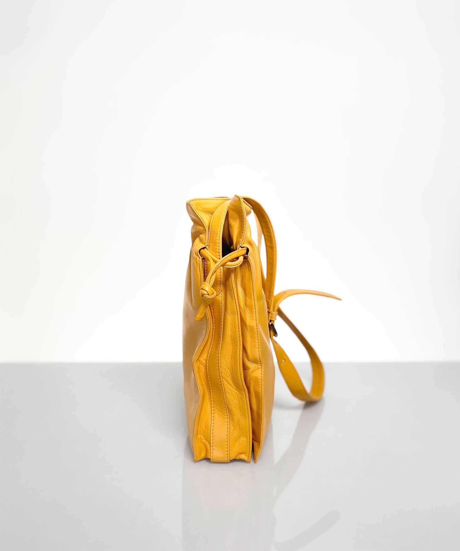 Soft Nappa Leather Preloved Loewe Flamenco Bag in Deep Amber Yellow Color, circa 2000's