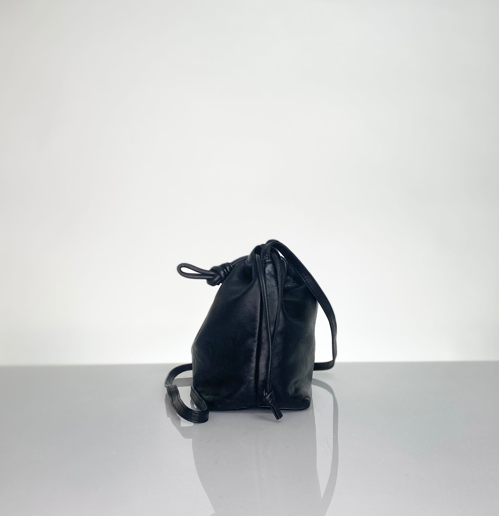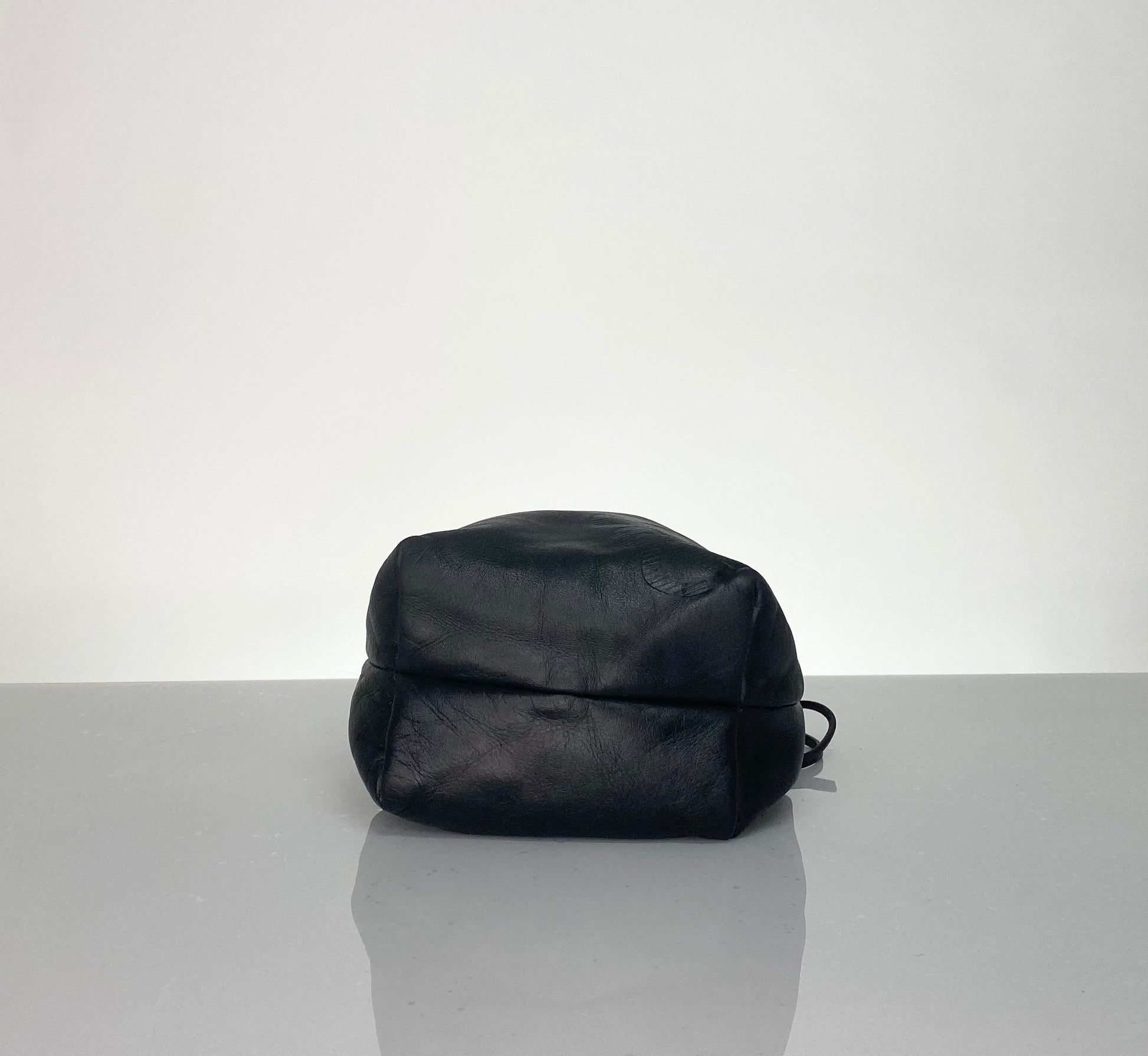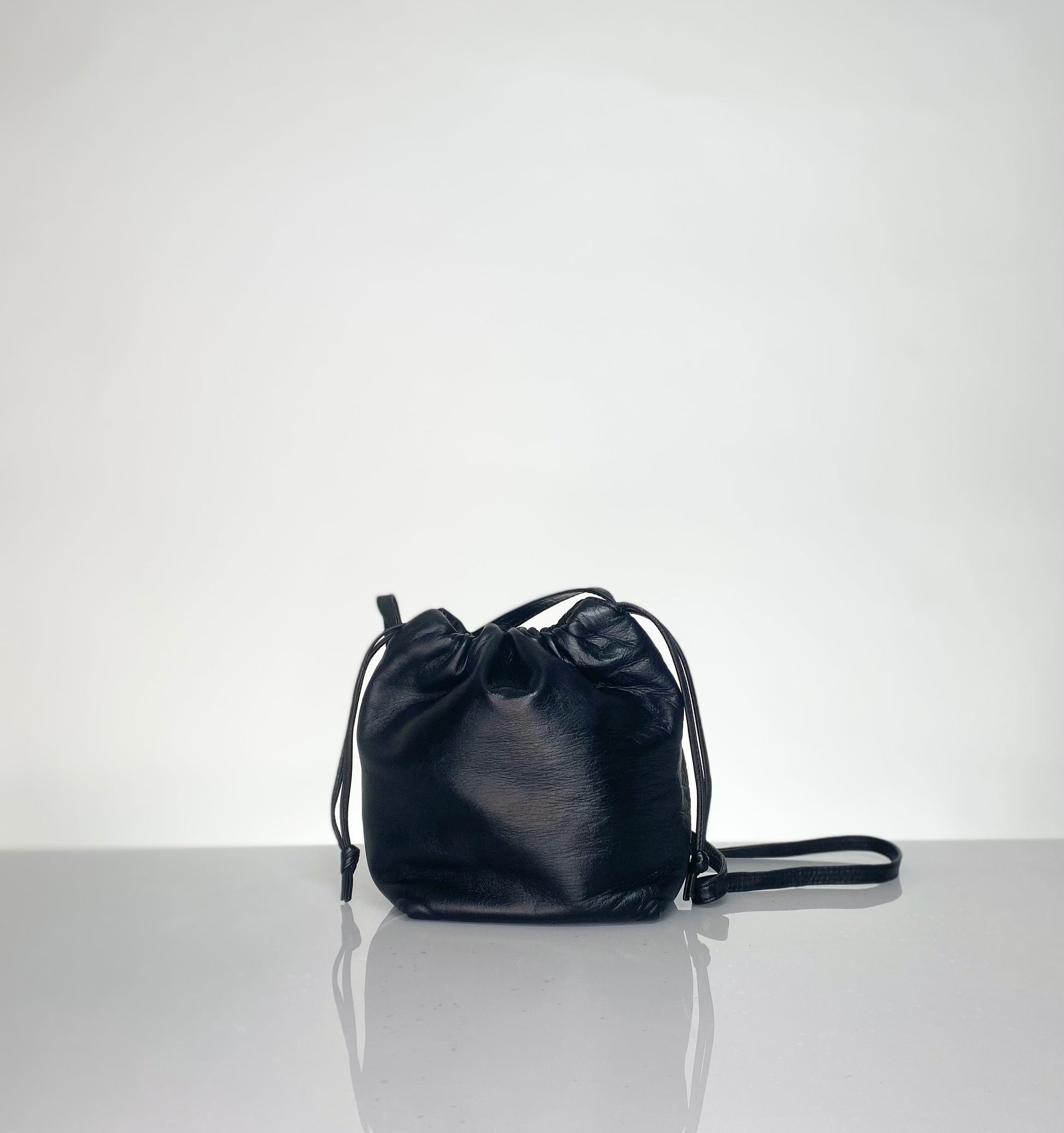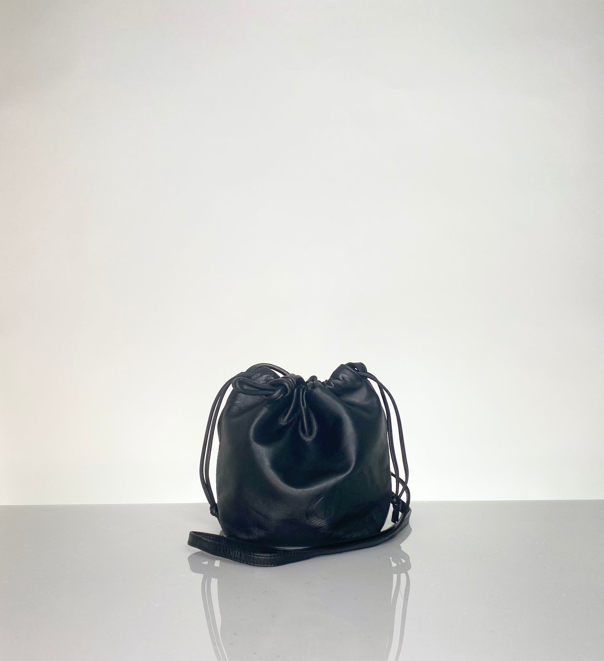 Ultra Soft Black Nappa Leather Drawstring Pouch Shoulder Bag