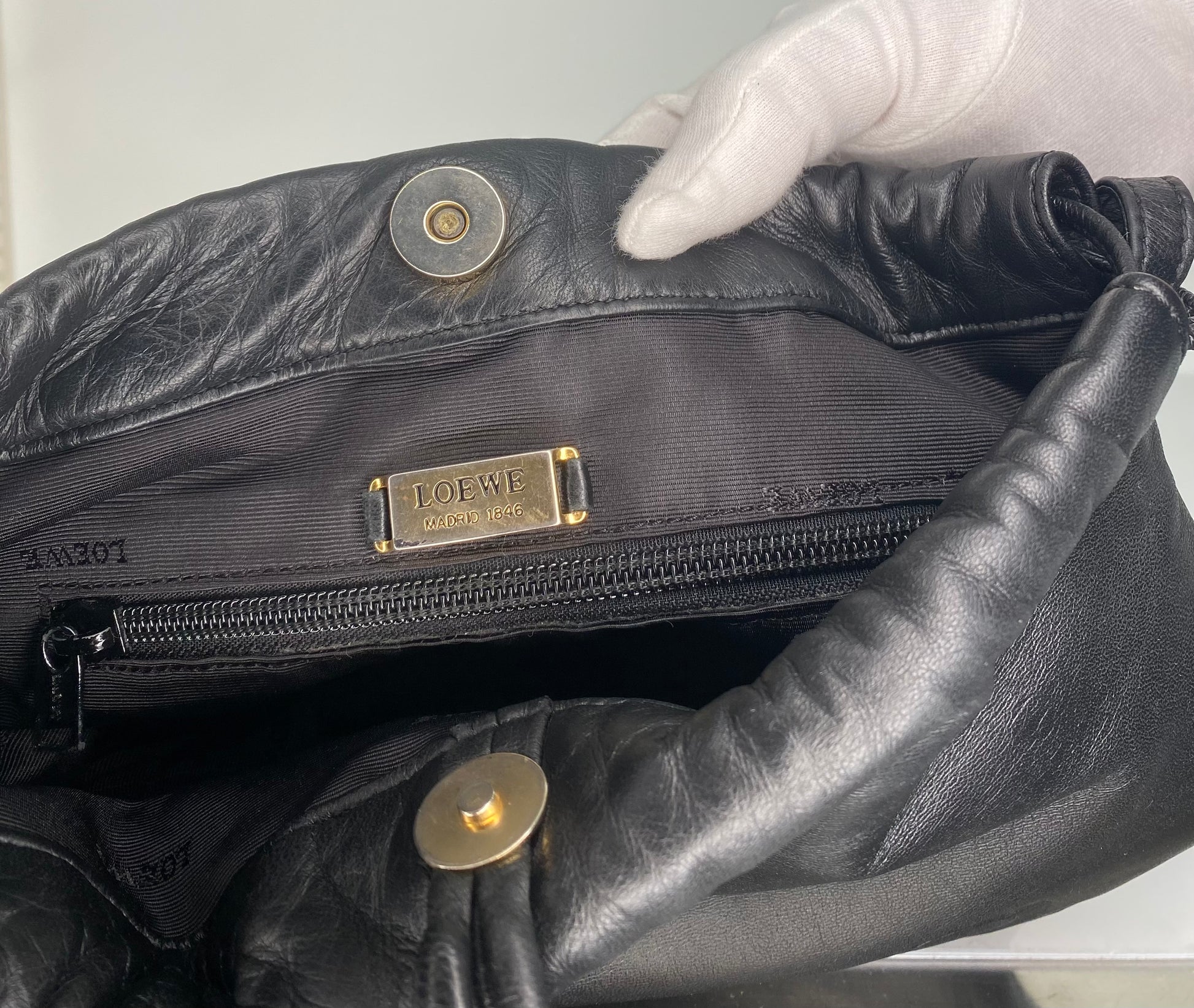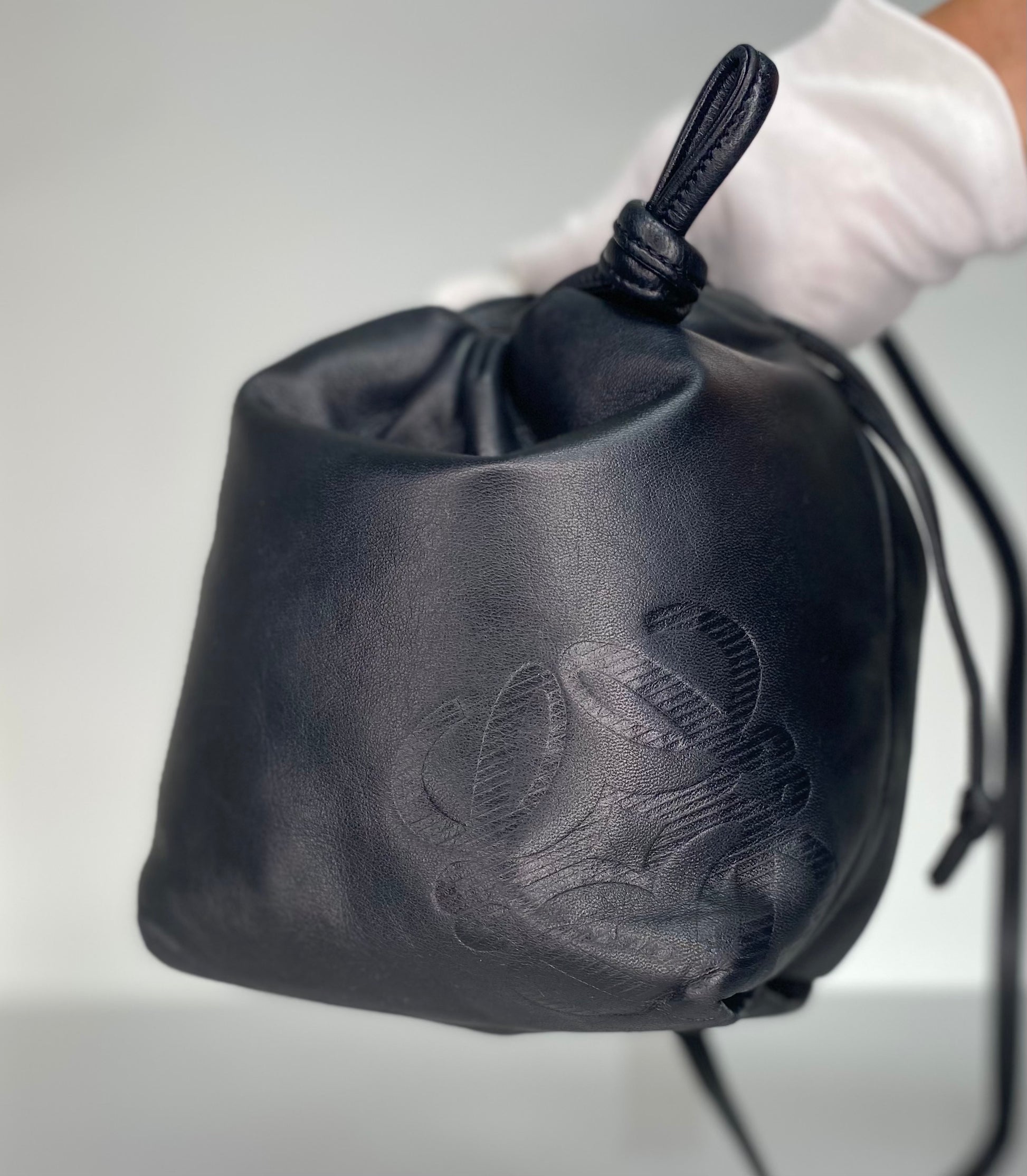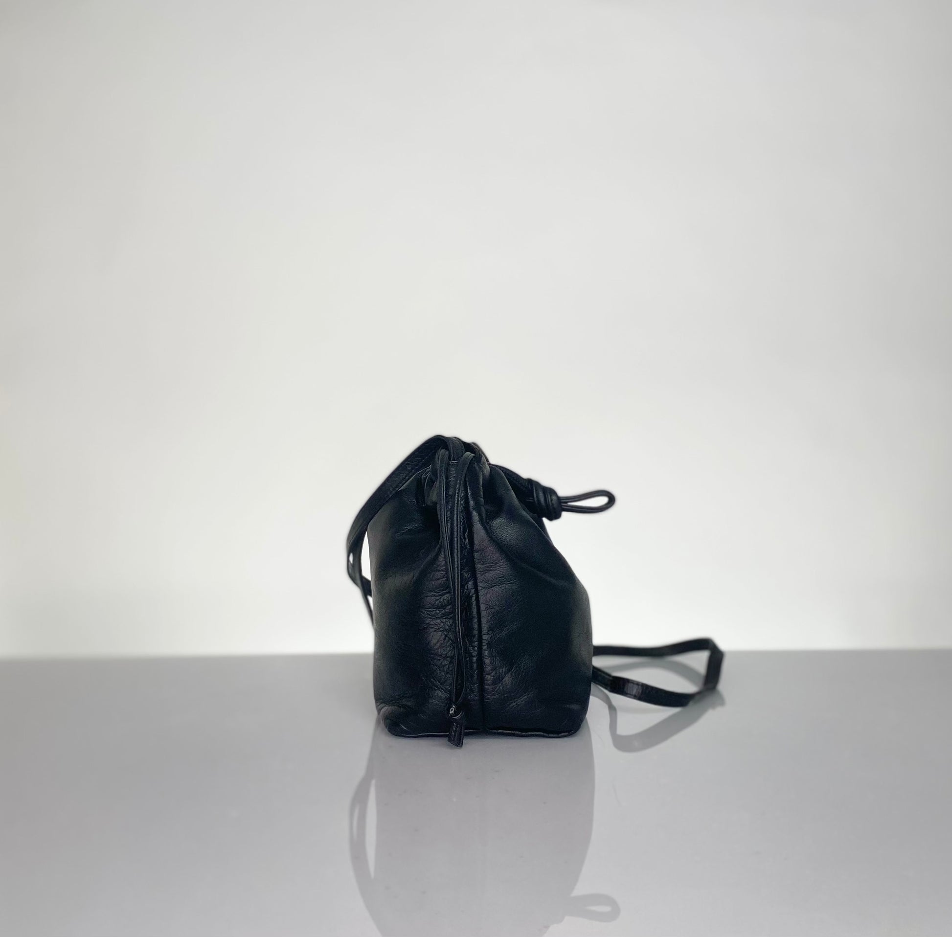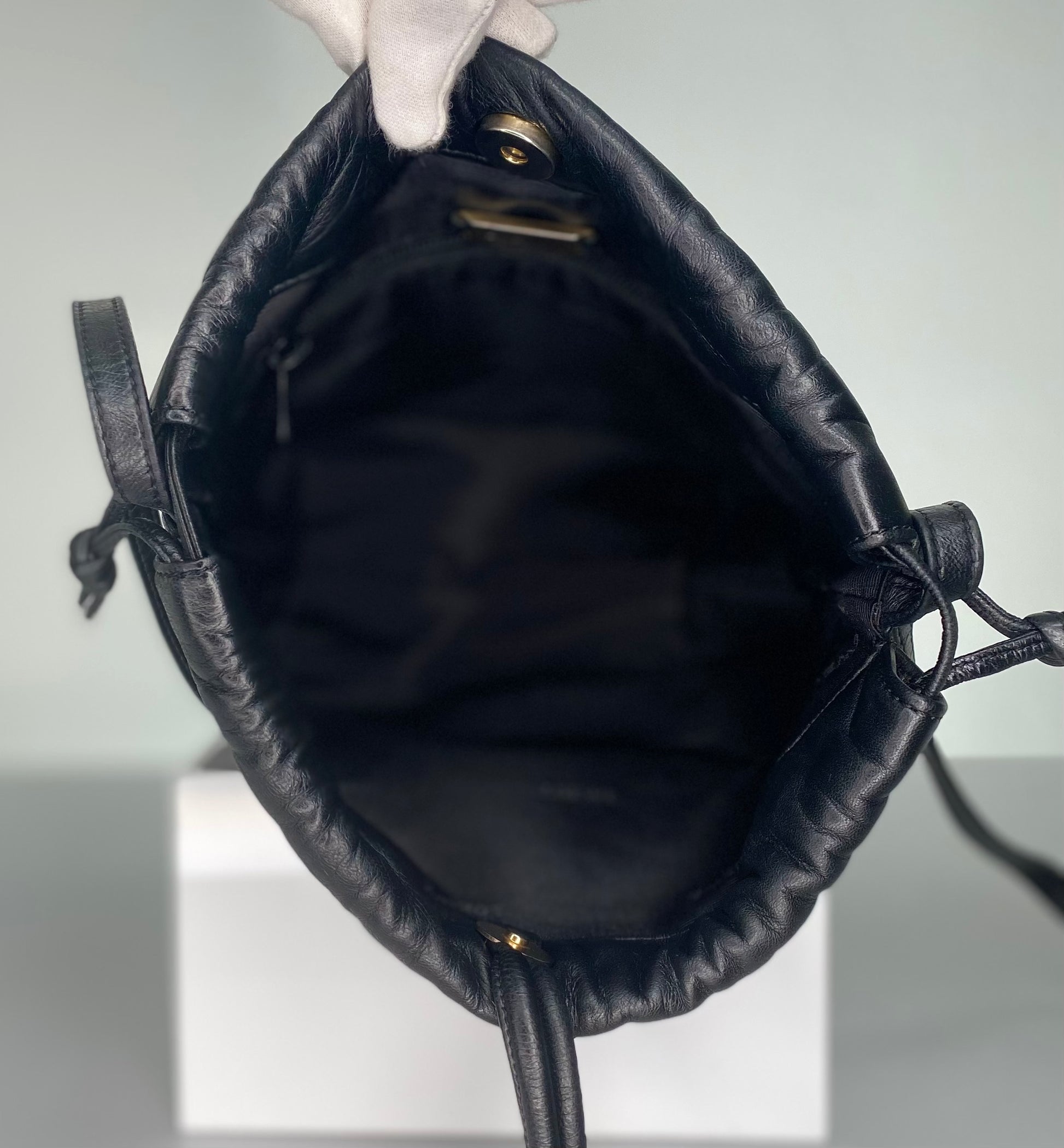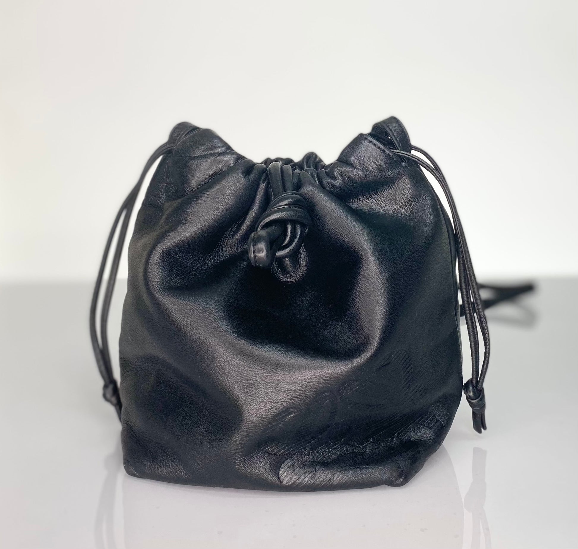 Ultra Soft Black Nappa Leather Drawstring Pouch Shoulder Bag