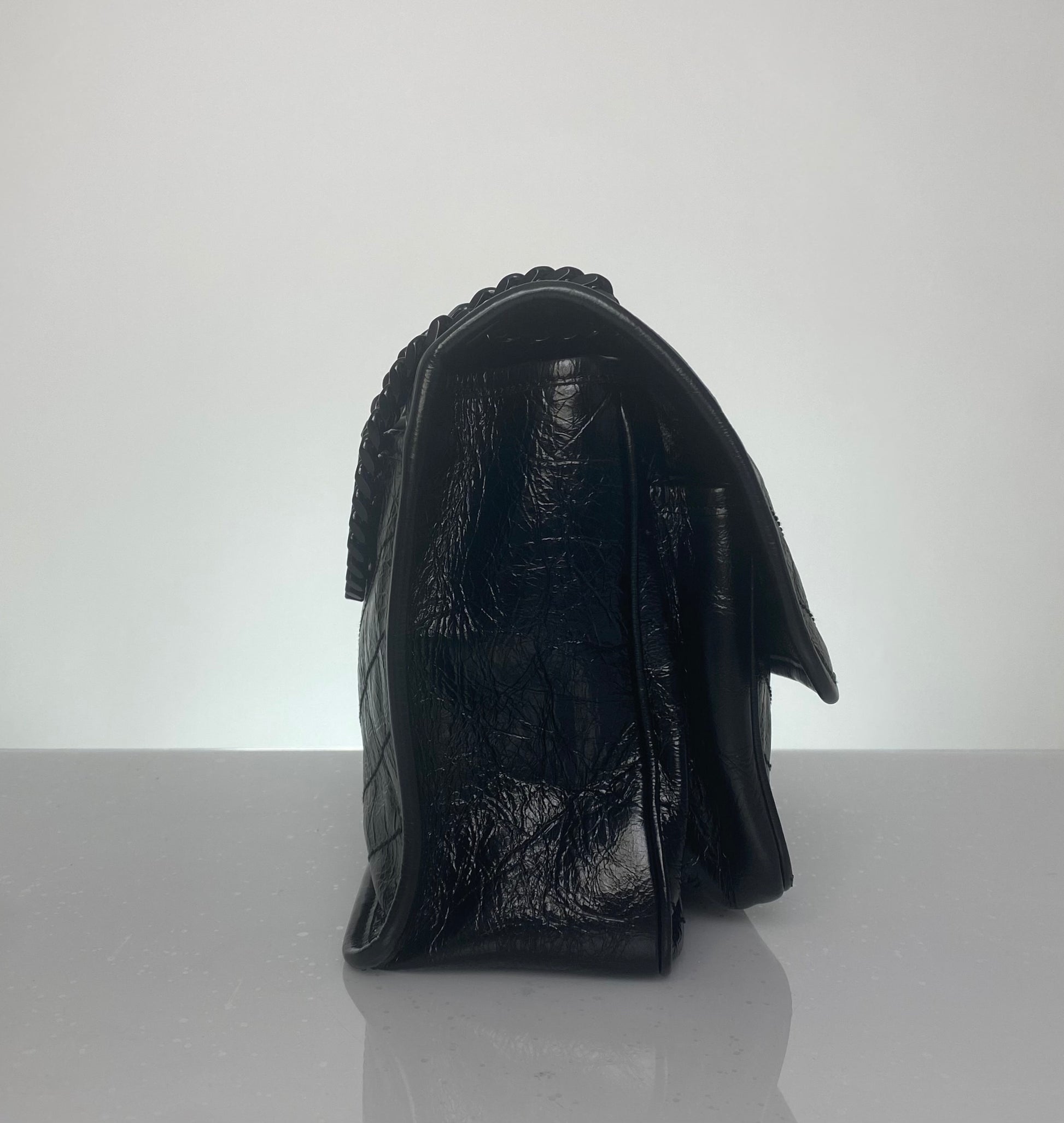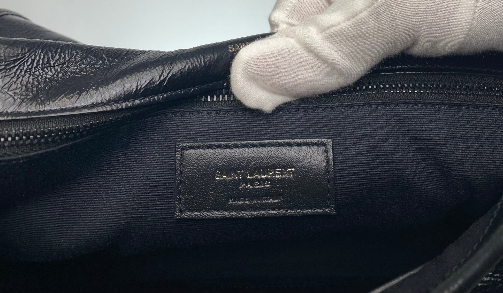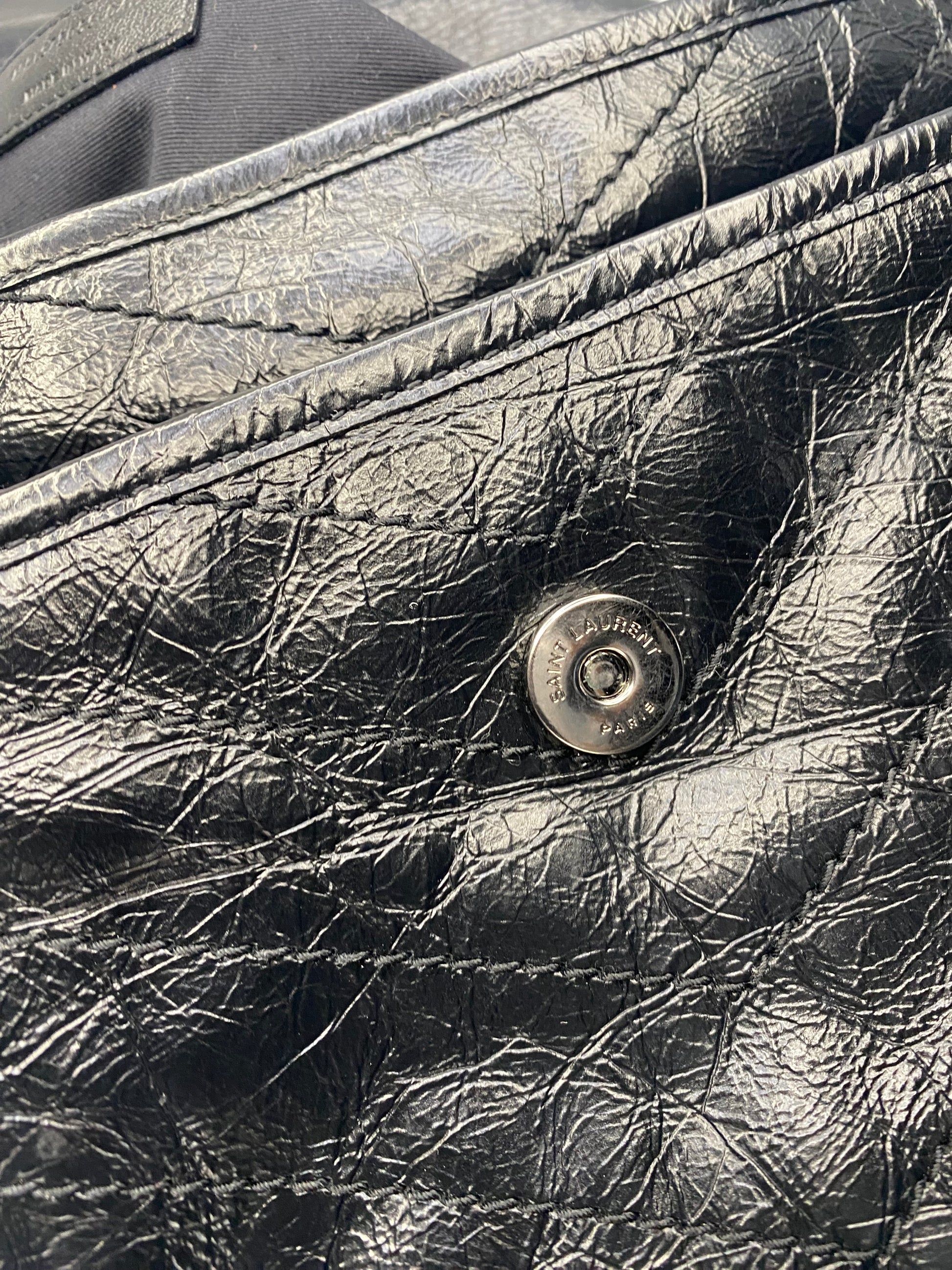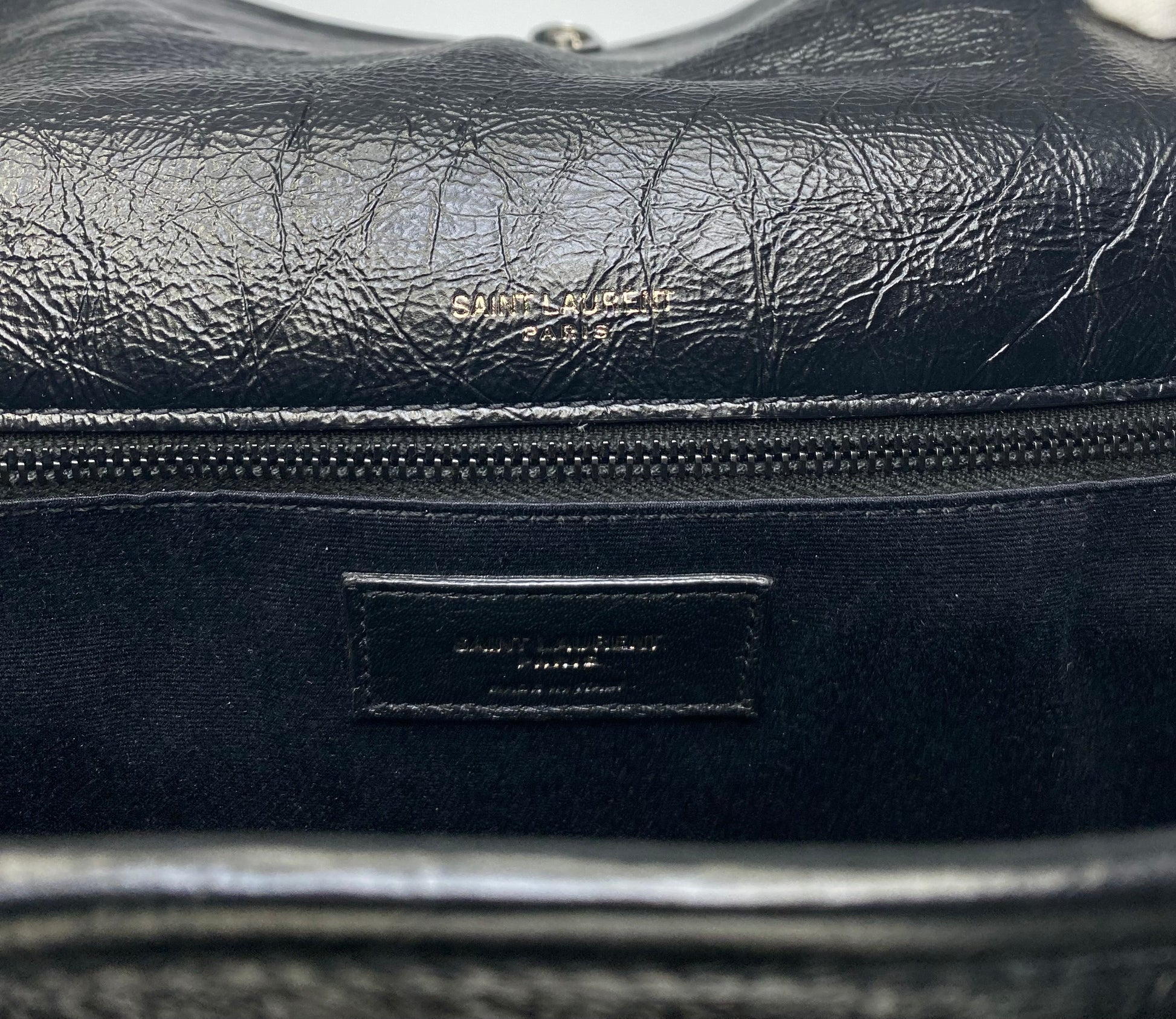 Saint Laurent Black Crinkled Calfskin Leather Medium Niki Bag