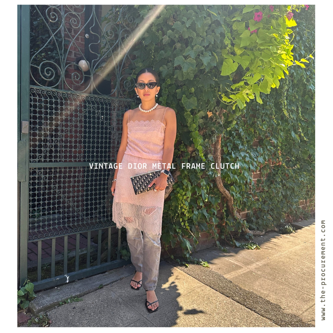 Navy Blue Oblique Jacquard w/ Goldtone Frame