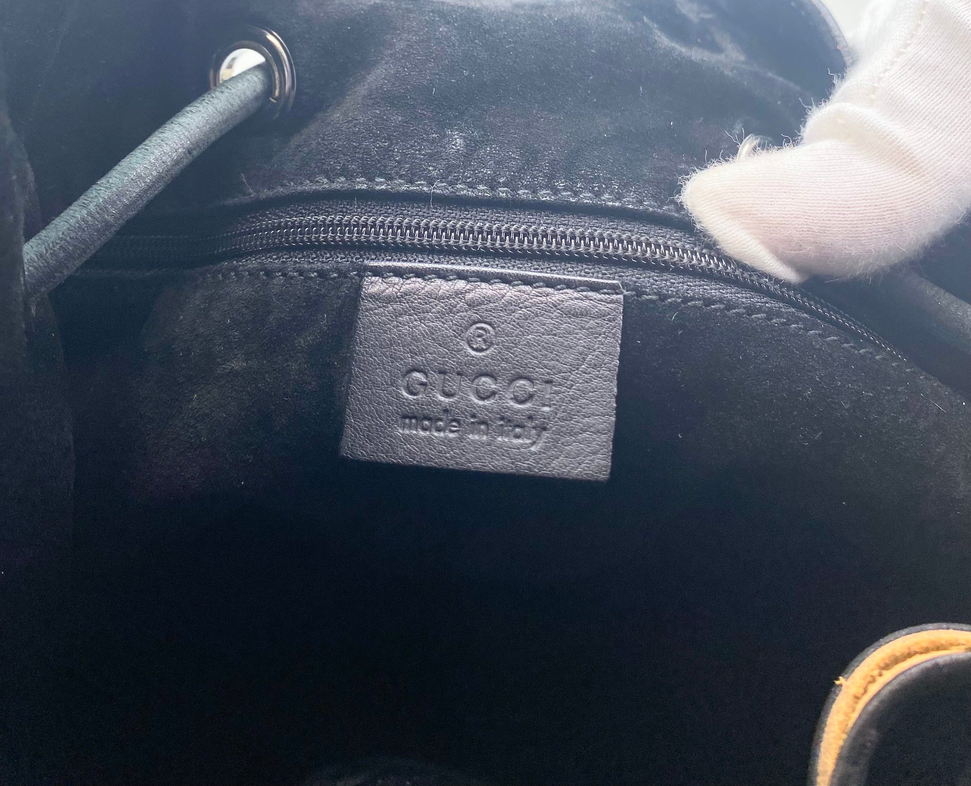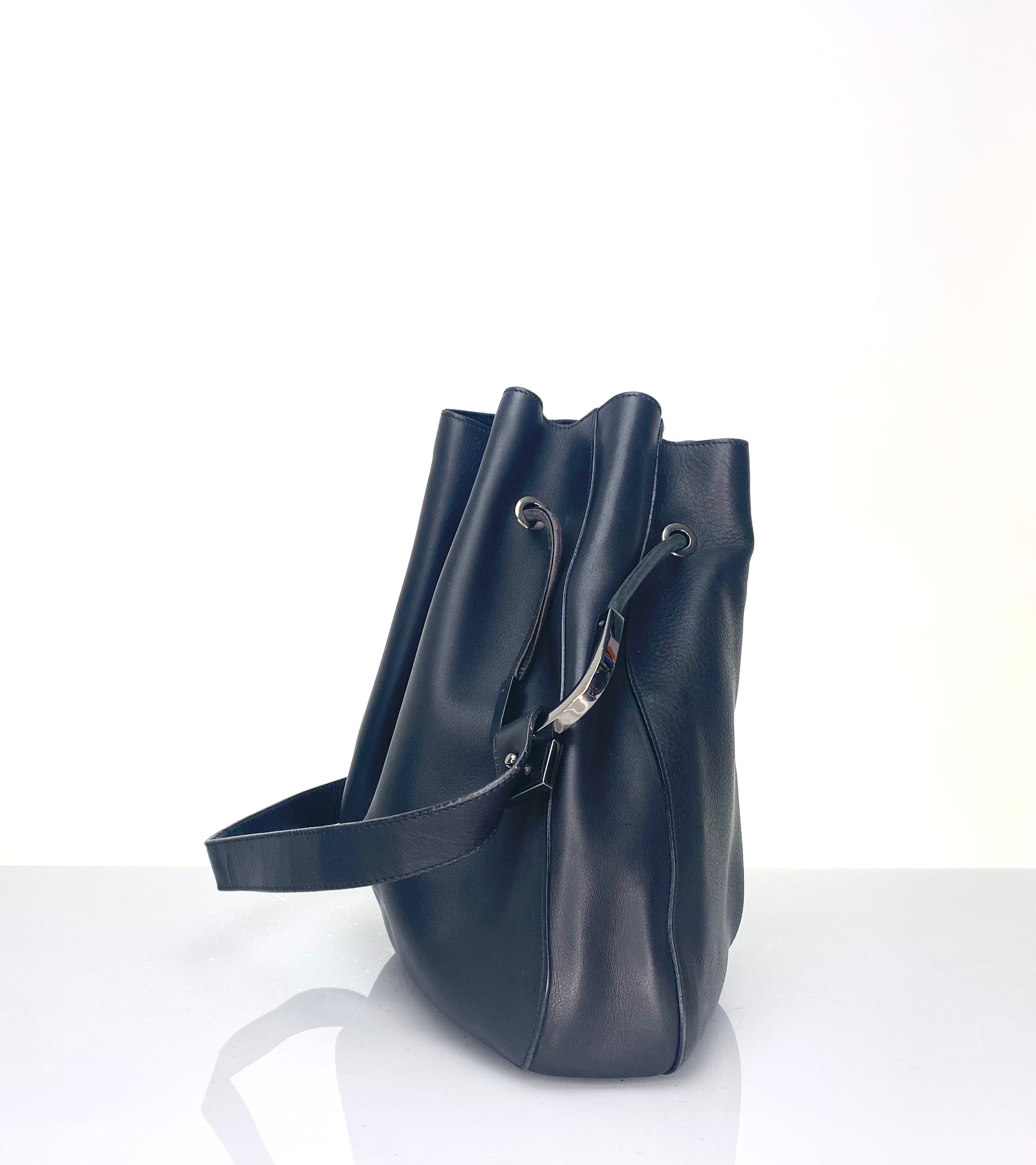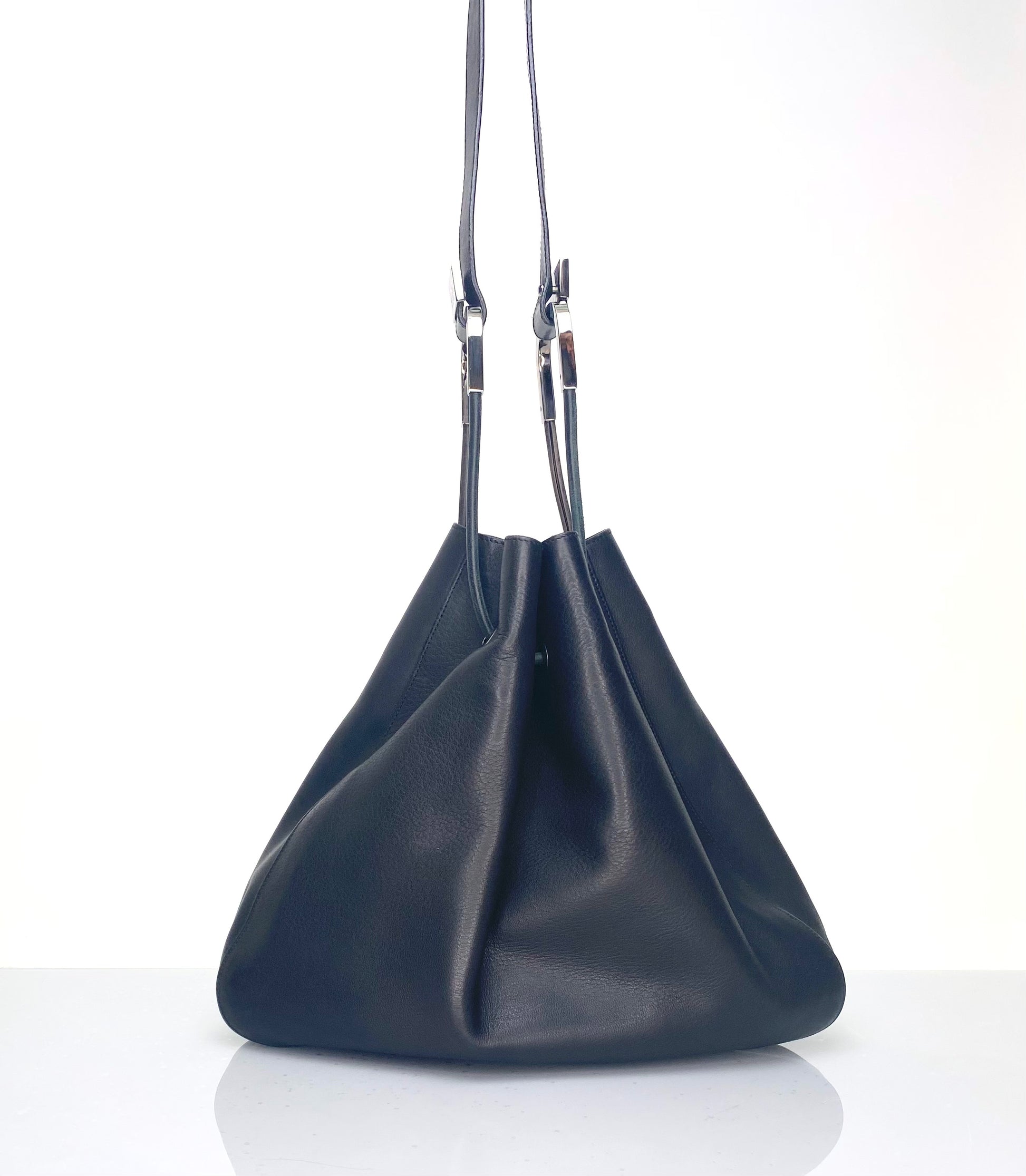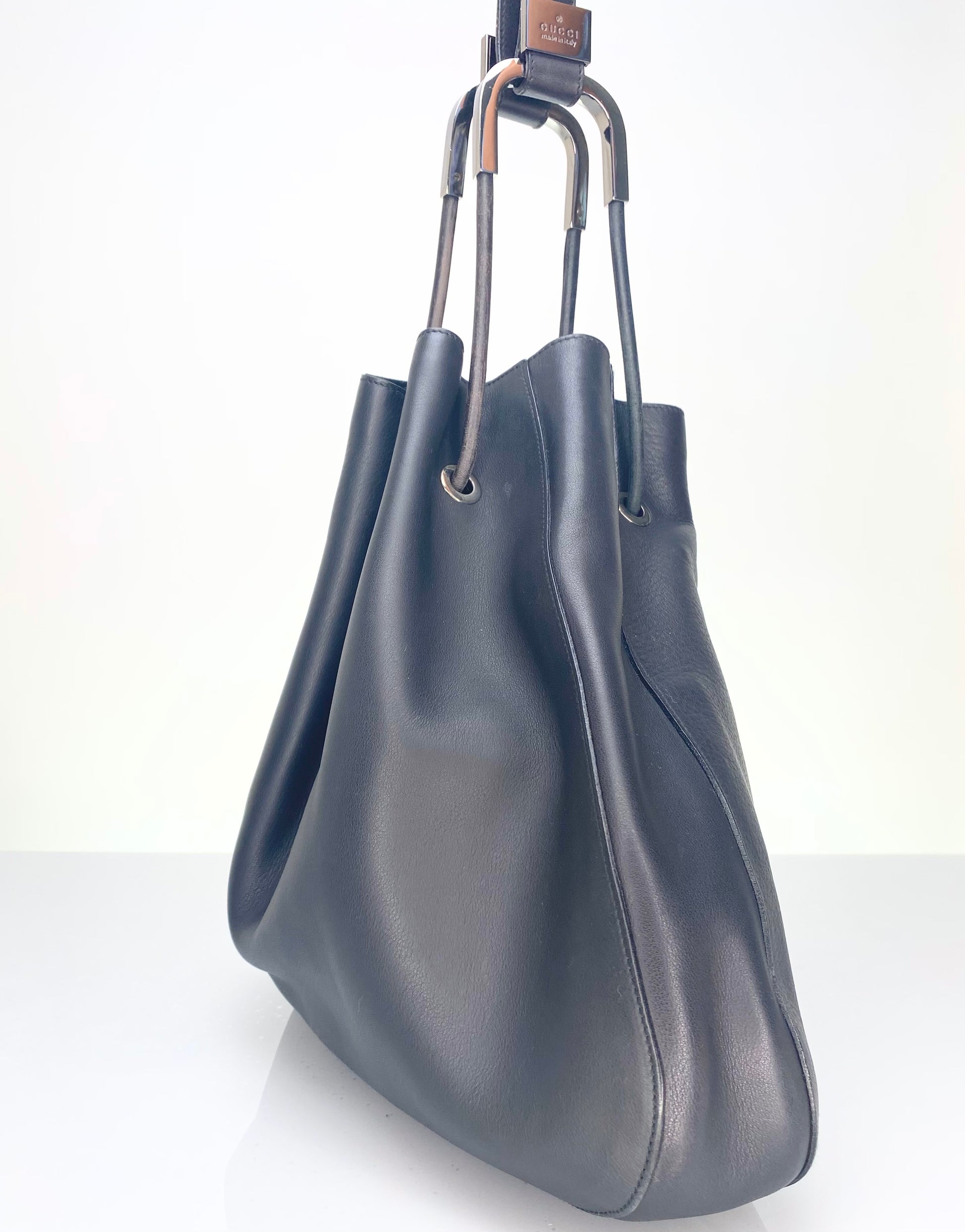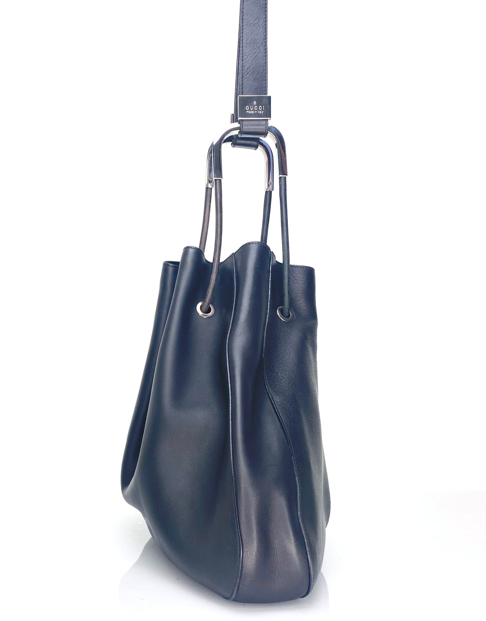 Vintage Gucci Black Leather Drawstring Bucket Bag